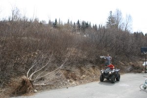 The hill out front is nearly ready for seed. Quick recap: here is where we were on May 12th, miserable and pulling alders with the ATV. (Just imagine how bushy this looks when these things leaf out!)