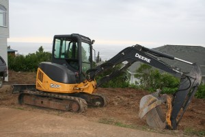 Our love story with heavy equipment shall continue when a Bobcat arrives. Clark will use it for leveling and hauling topsoil. Then it will be time to seed, which means babysitting the sprinkler for a few weeks.
