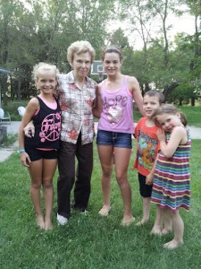 After the pool fun, my parents cooked one of their amazing meals. Dad grilled the chicken, Mom chopped the salad, and Grandma Quigley joined us for the evening. That would be great-Grandma Quigley to all these kiddos: