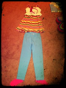 Once again, she had a rockin’ outfit laid out on the floor. Apparently a headband is once again part of the ensemble.