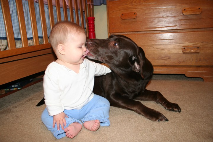 When we started to bring human babies home, she was skeptical at first but eventually accepted them as part of her pack.