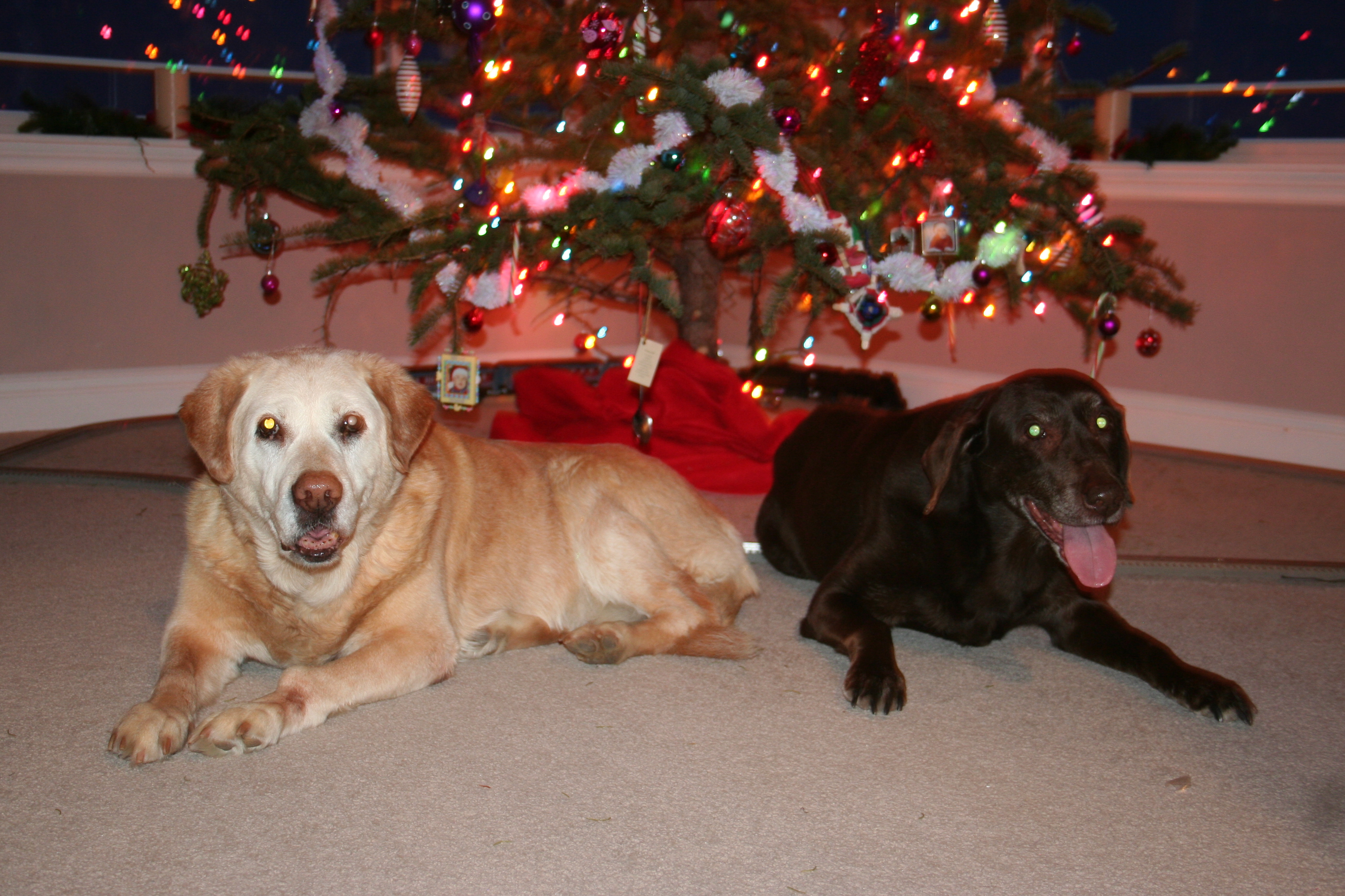 Decorating was bittersweet.  We have a photo ornament with the dogs’ pictures, and this is our first Christmas without them.  Was it only 12 months ago that I was forcing those poor hounds to pose for yet another annual photo under the tree?  It was strange enough not to have them bounding at our side as we searched for a tree, but hanging their ornament was especially sobering.