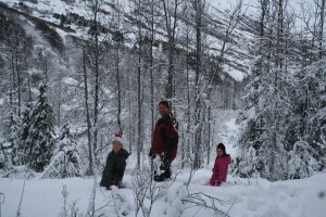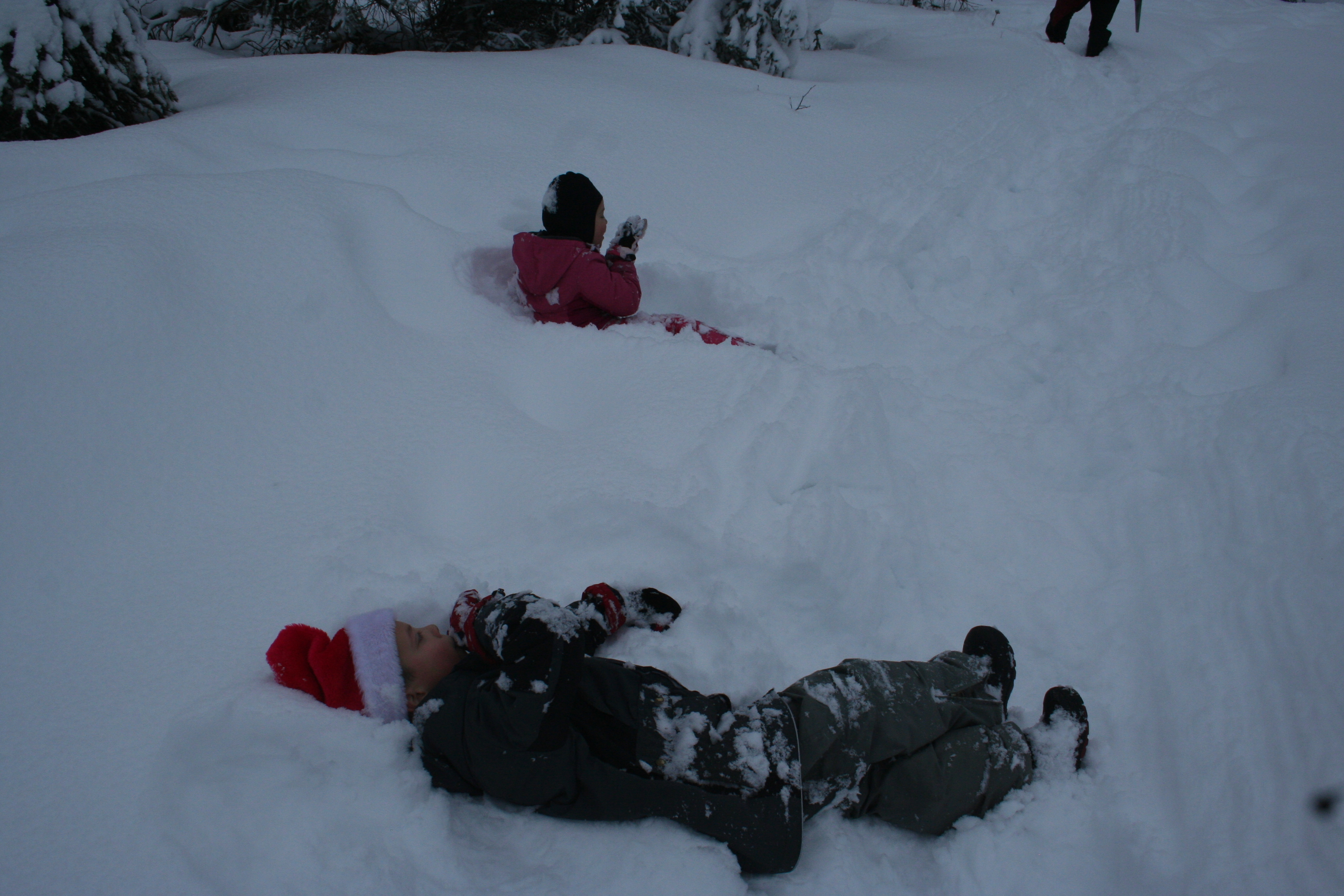 After over an hour of post-holing through the snow, the kids were getting exhausted.  Luckily, they were content to take a break while we forged ahead on our own.  No tears this year!  (Whining, yes… tears, no.)