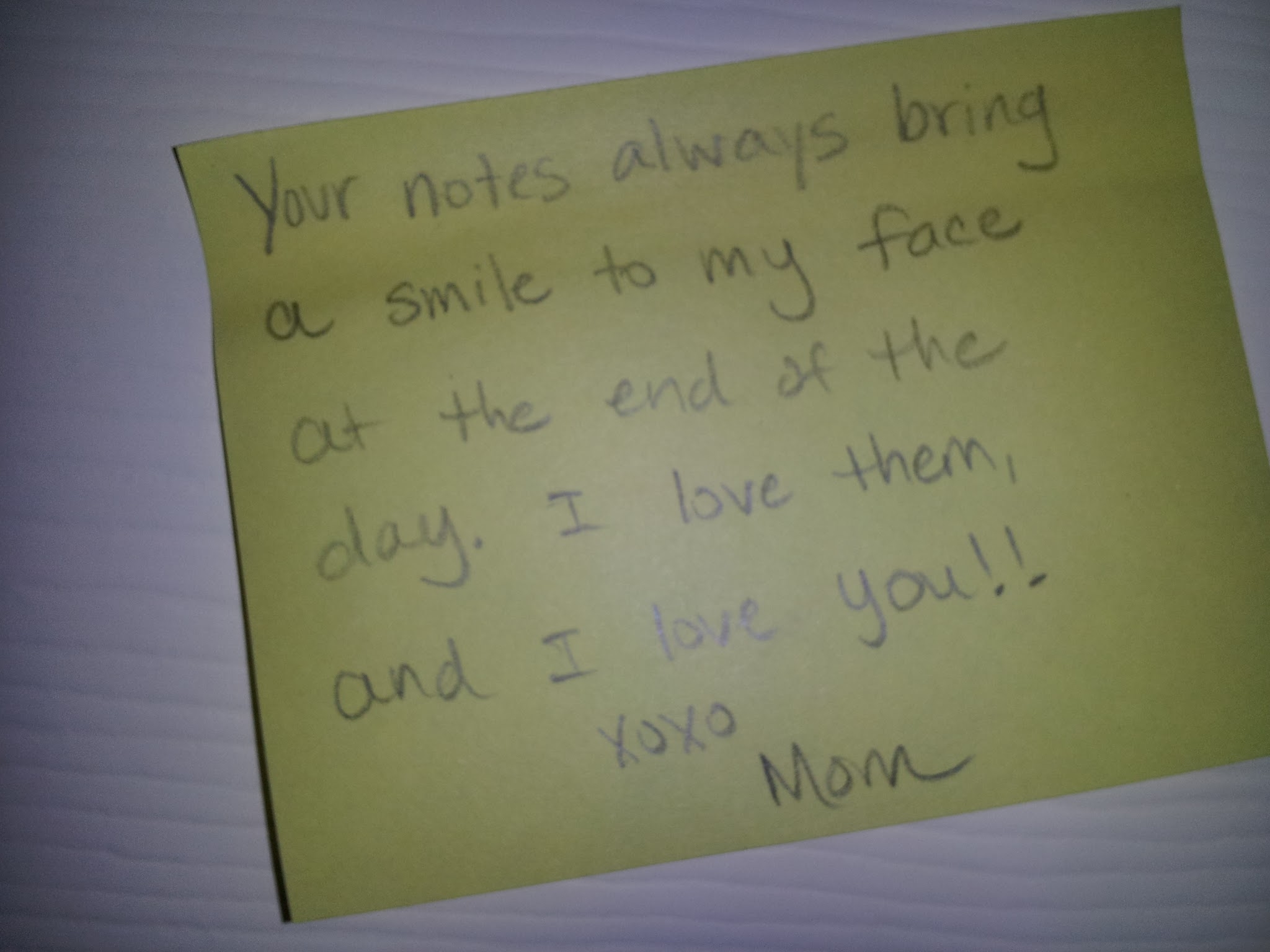 My botched sewing job warmed her legs, but her little sticky notes warm my heart. That’s why when she wakes tomorrow morning, she’ll find a little love note sticking to her door: