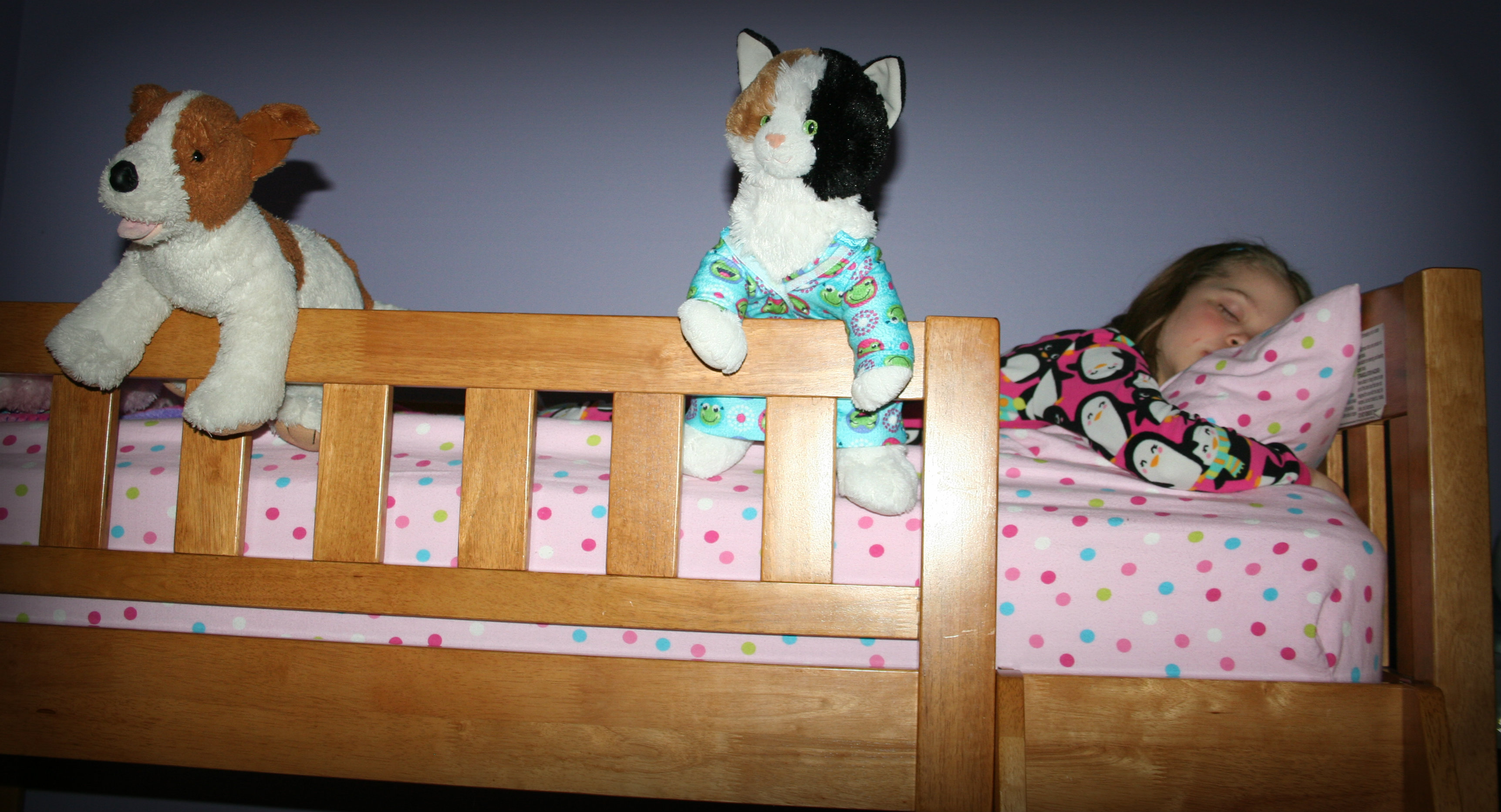 She does eventually go to sleep, but clearly a lot of activity goes on in her room between bedtime and morning. Toy animals are rearranged, post-it reminders get plastered everywhere, and the next day’s wardrobe is carefully orchestrated. We should probably monitor this better, but we are over 40 and simply don’t have the energy.