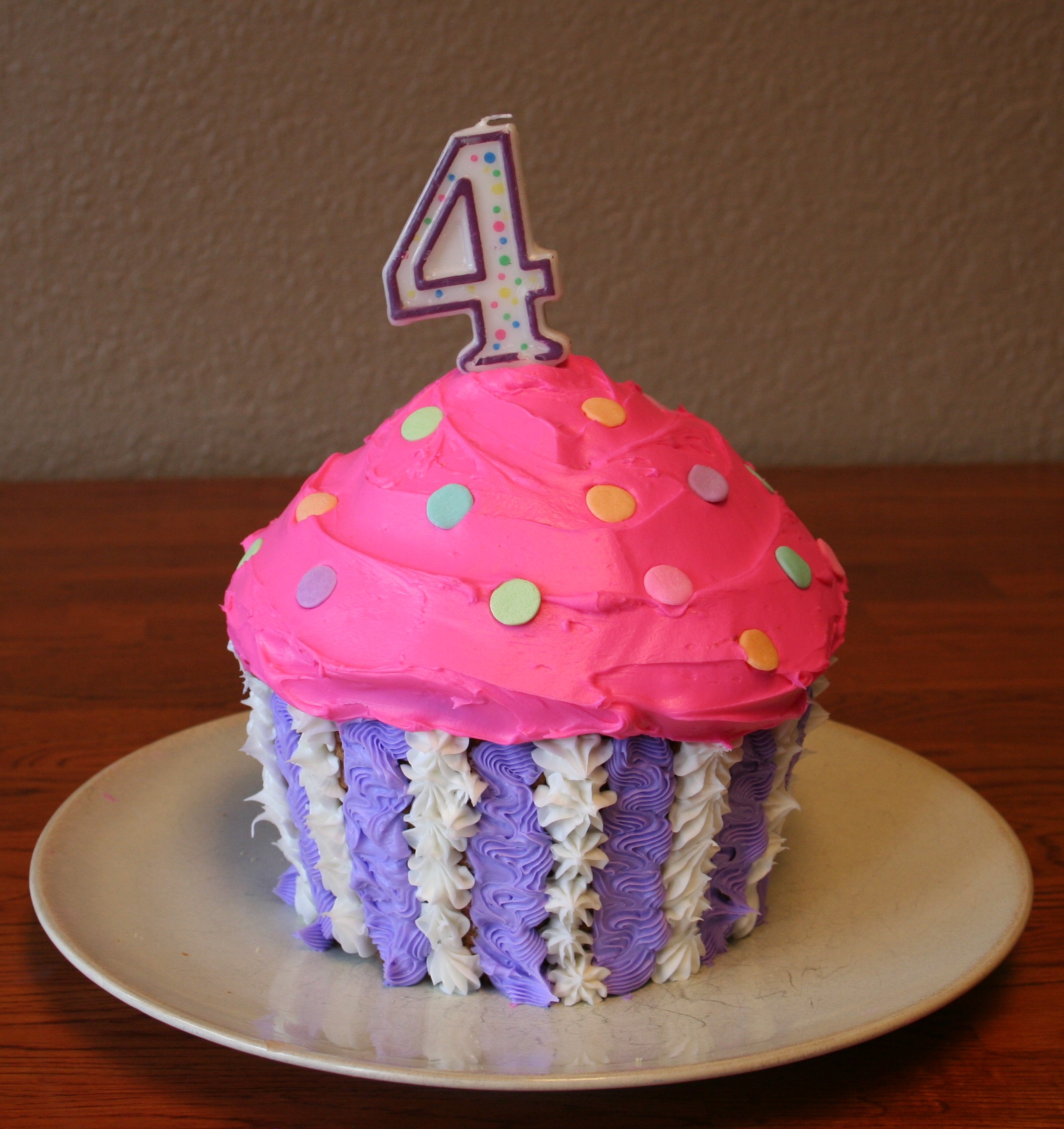 The cake took backstage at this party, because the kids all had their own individual cupcakes to frost and decorate.  But what would a party be without some sort of sugary centerpiece?  As a compromise, I baked a giant cupcake for all the grownups to enjoy.  You can buy a Wilton pan that makes this pretty simple:
