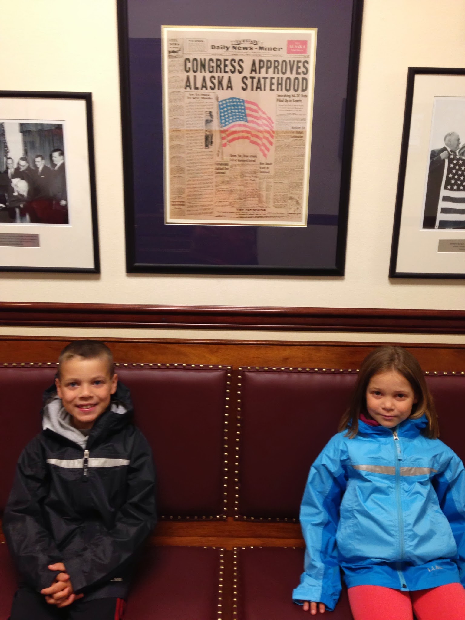 Our first stop was the Alaska State Capitol building. There was some major construction in front of the building and the entire street was closed, but we were able to enter through a side entrance. It was actually fun to take the kids on a little self-guided tour, teaching them how the Senate and House work together (or not?) and explaining the basic fundamentals of our government system.