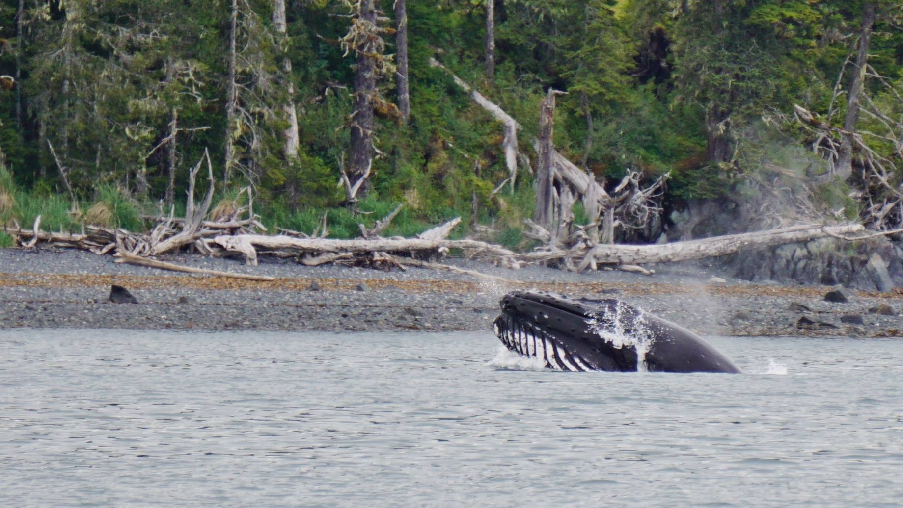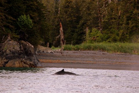 We could still see the whales out at sea and they kept coming closer! Lori and I saw one breach right near the shore, and we all made our way to a small spit where we perched on a driftwood log and watched whales just off the shore for over an hour. We were kicking ourselves for not bringing cameras (other than the ones on our phones) ashore!