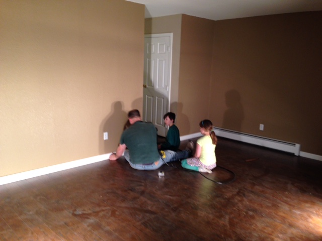 We spent nearly every night across town at the duplex. We celebrated my birthday by ripping out the carpet, and Valentine’s Day was all about removing the popcorn ceiling. We hardly saw the kids on the long President’s Day weekend, when we dropped them off with family friends to give them a break from the duplex chores (although they helped plenty):