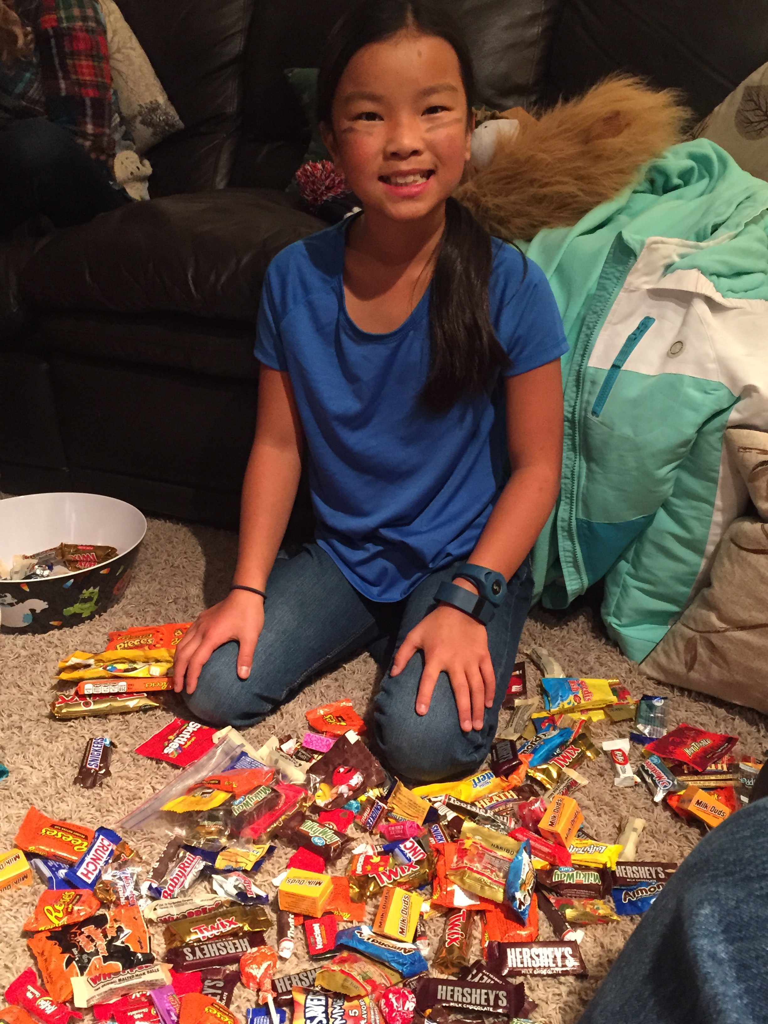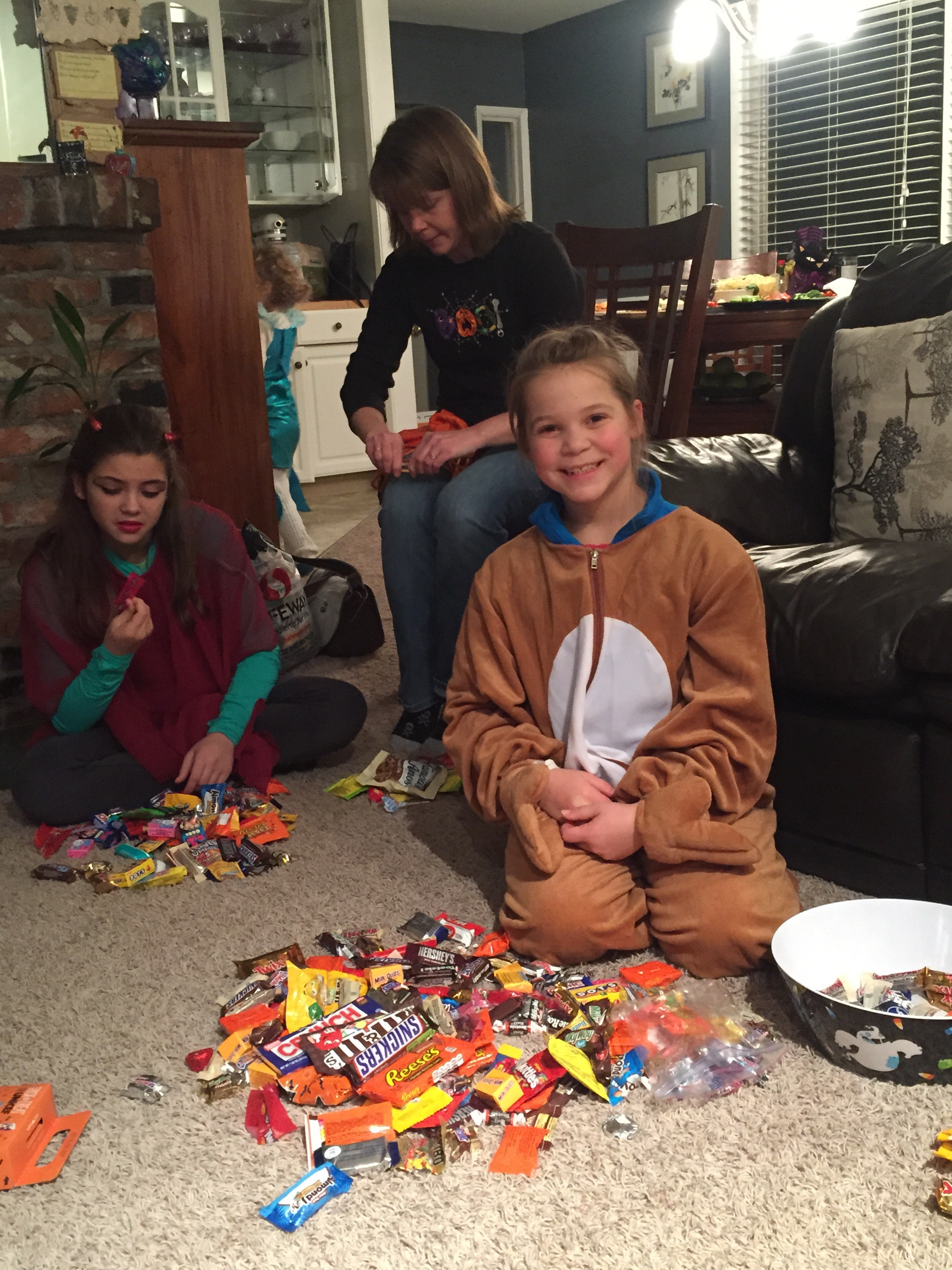 I know these kids need some autonomy before we send them to college, but oh my gosh I was nervous! I thought they would never return, but then the little stinkers rang our bell and nearly fell down laughing as they screamed “Trick or Treat!!” when we answered the door. They had taken a school backpack, and kept unloading their little buckets of loot into the pack. They were heavily laden with both pride and candy when they crossed the threshold of safety, and a huge trading session ensued!
