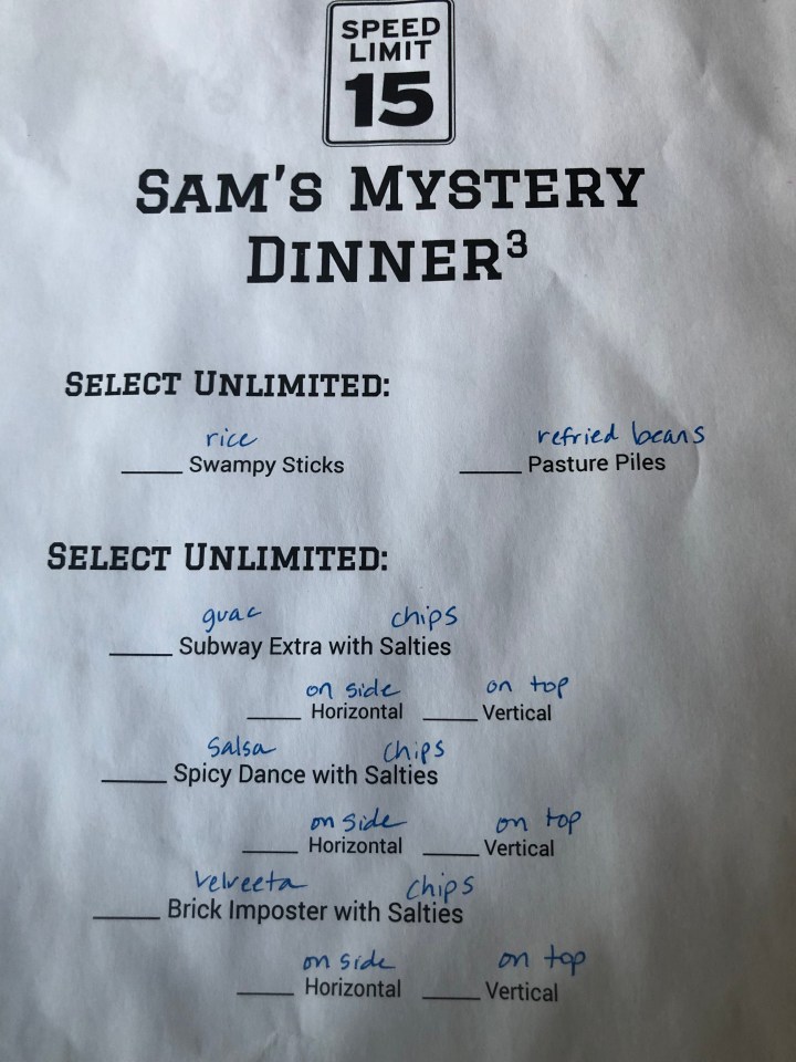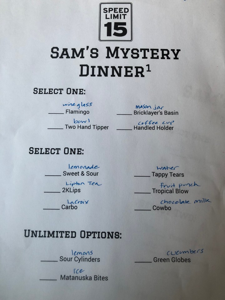 In all seriousness, Sam and his friends are all great kids. They even let me torture them with one of my mystery dinners. I do love planning those things!