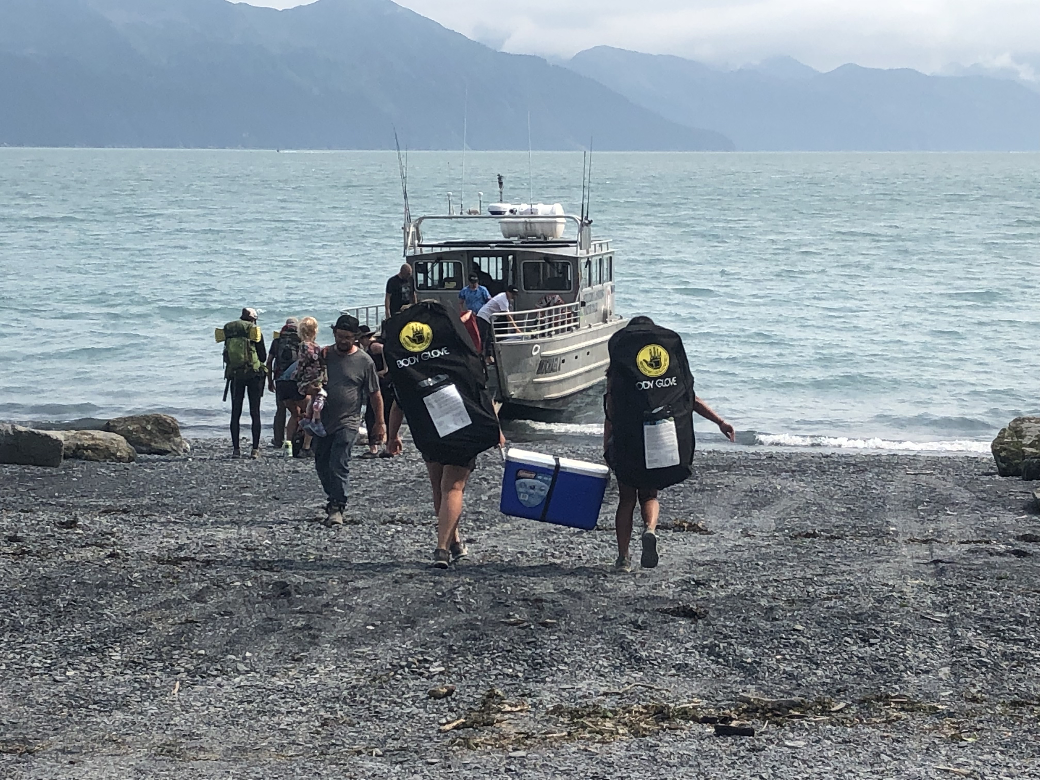The water taxi folks adamantly refuted the campground host’s claims, stating that Glacier Spit bears were “prevalent but habituated.” People were seeing plenty of bears, but no one was getting charged, let alone chased up trees. To further alleviate my fears, they pulled out a map and circled all the places bear-proof storage bins were located. Armed with this information and a few cans of bear spray, we stuck to the original plan.