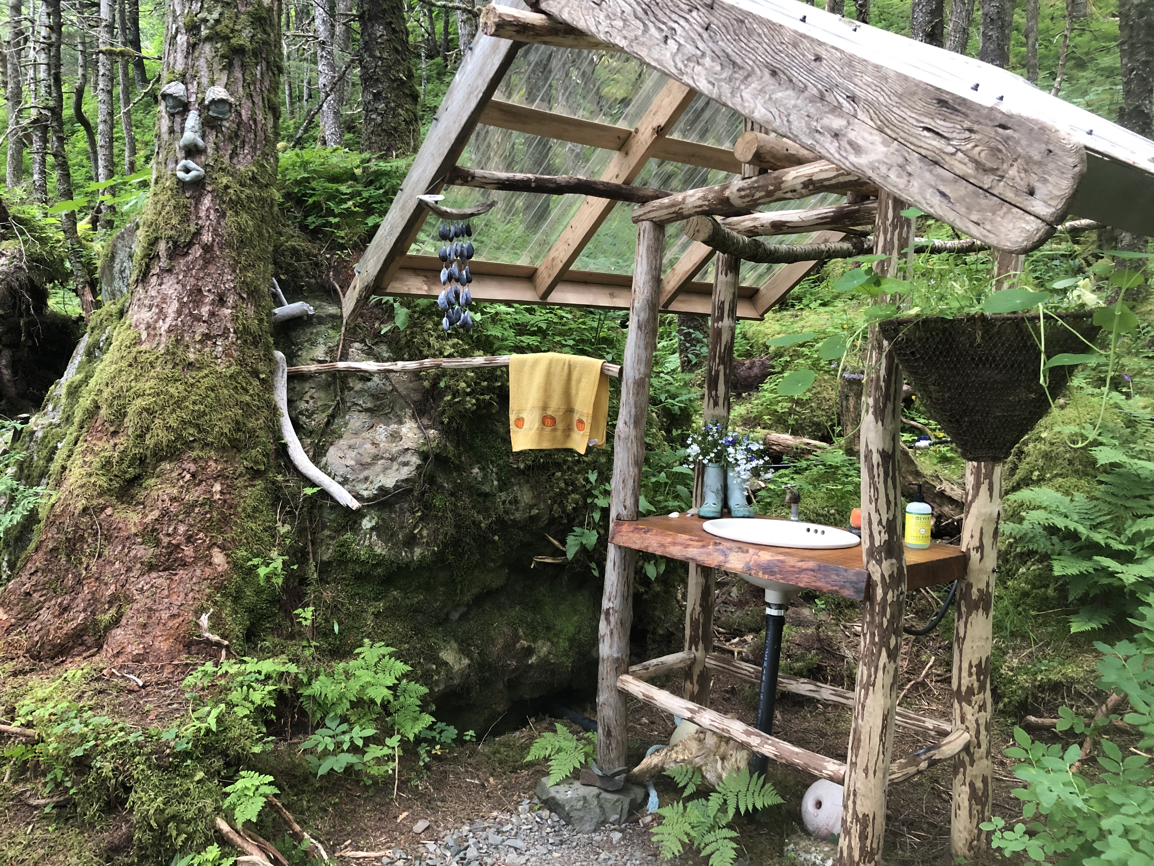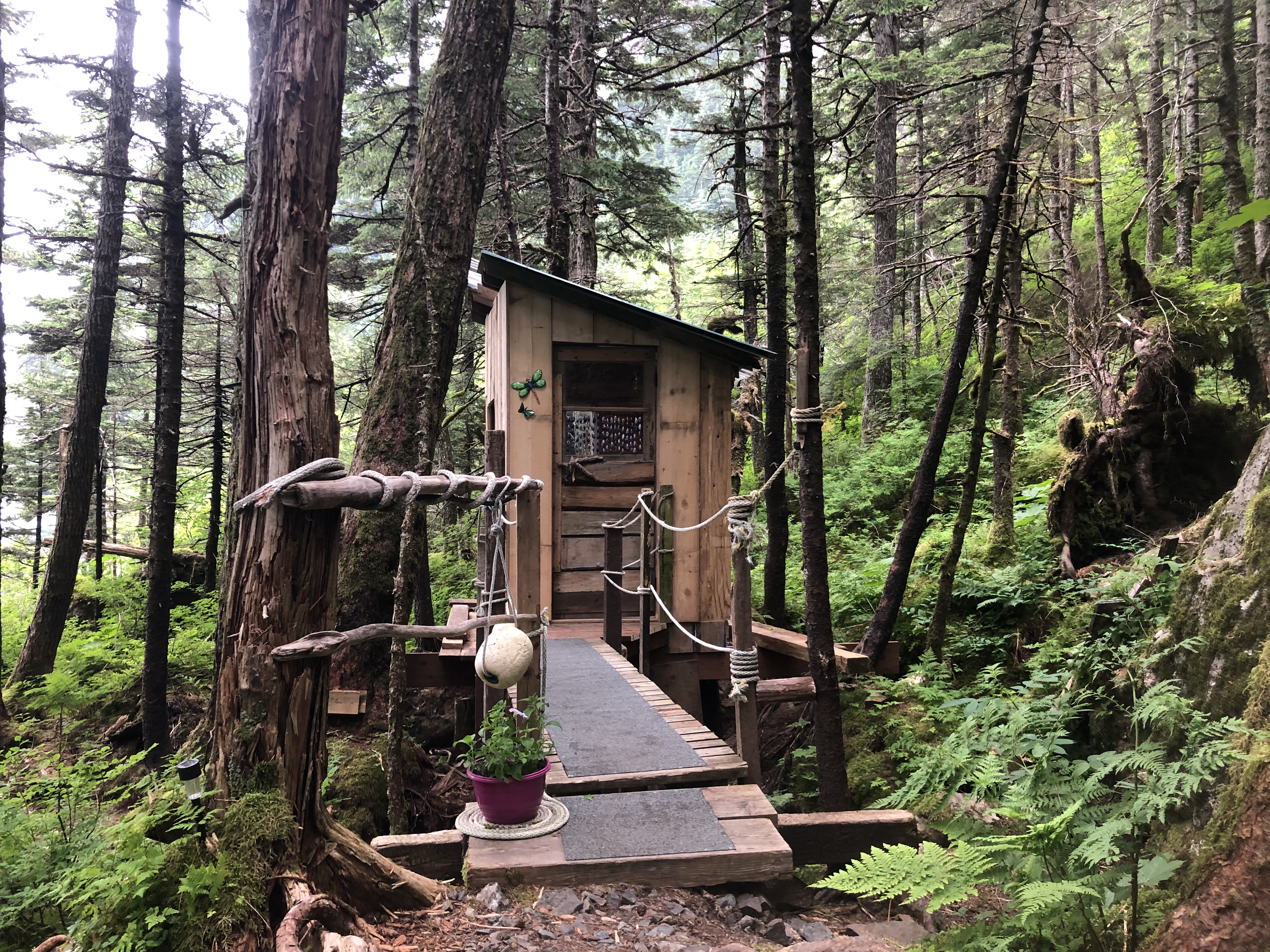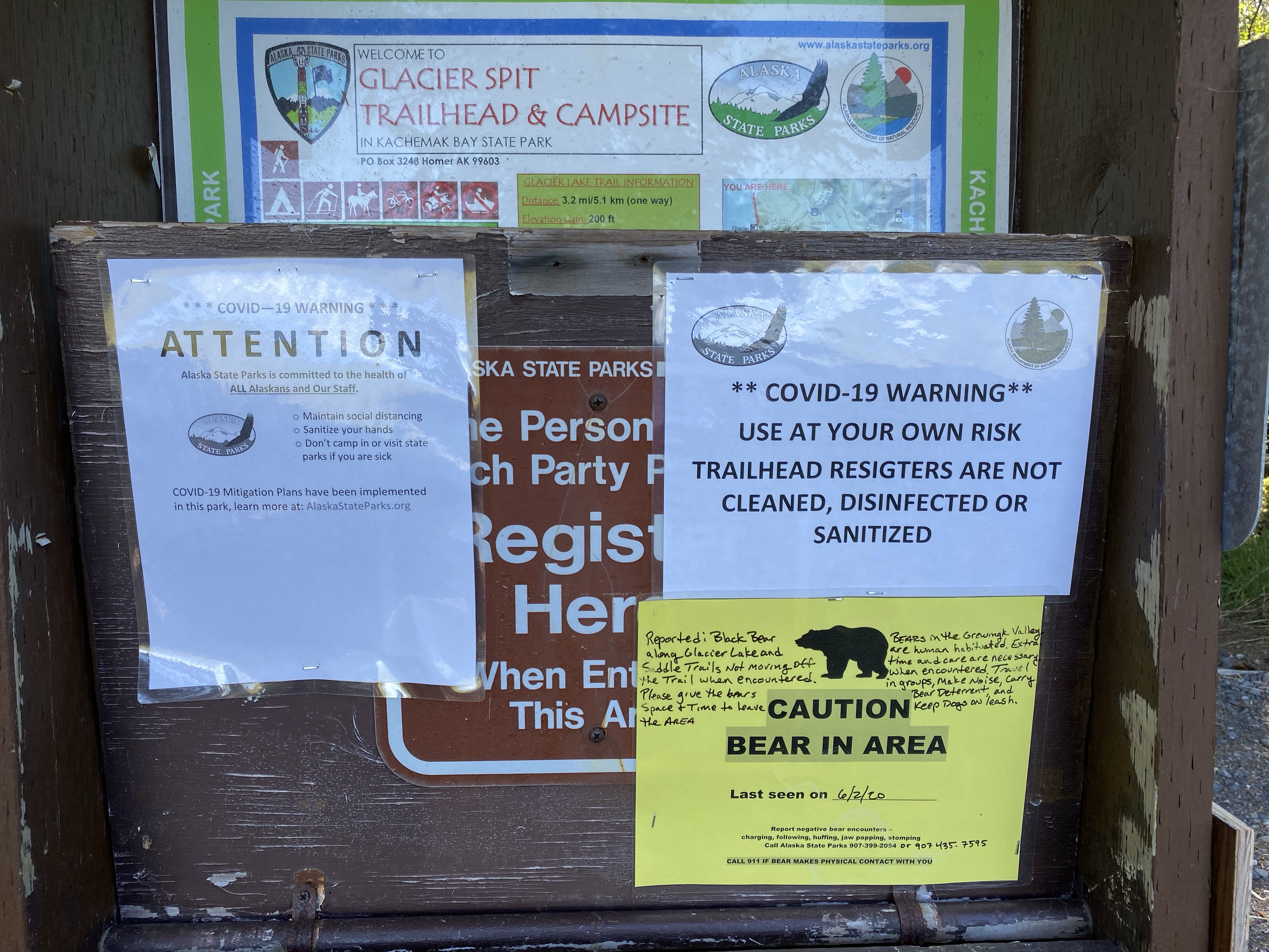 The next morning we checked out from our safe space and headed into the abyss. As I loaded my car the campground host buzzed over on his ATV and engaged in small talk. Upon hearing we were headed to Grewingk Glacier he said, “I hope you ladies have your bear spray! There are some aggressive black bears in that area who have been treeing people!”