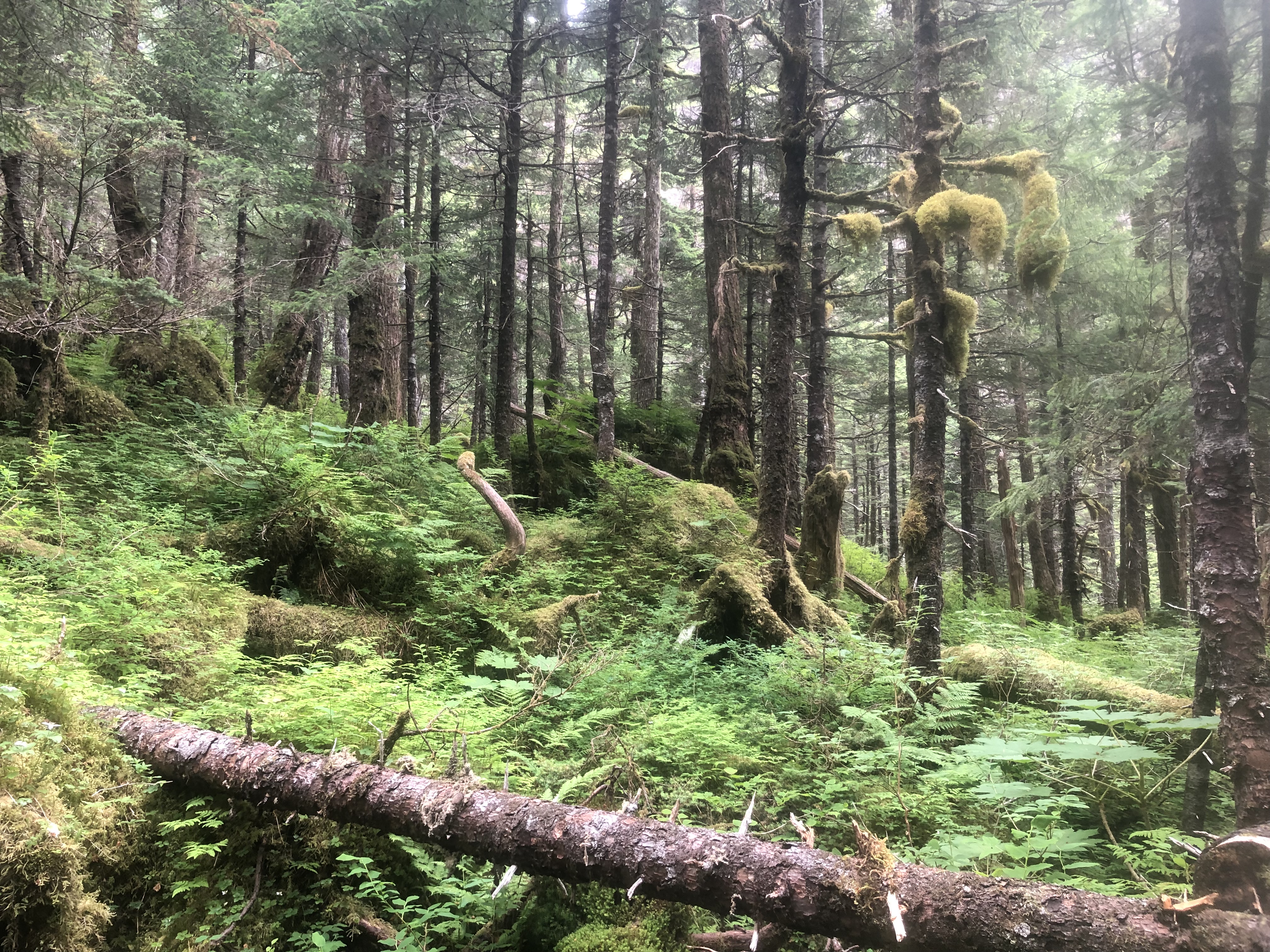 The forest transformed as we hiked. From dense stands of birch and aspen to dark, scraggly spruce to wide open mountain vistas, it’s no wonder that bear climbed a tree to take it all in. The various shades of green play well together this time of year.