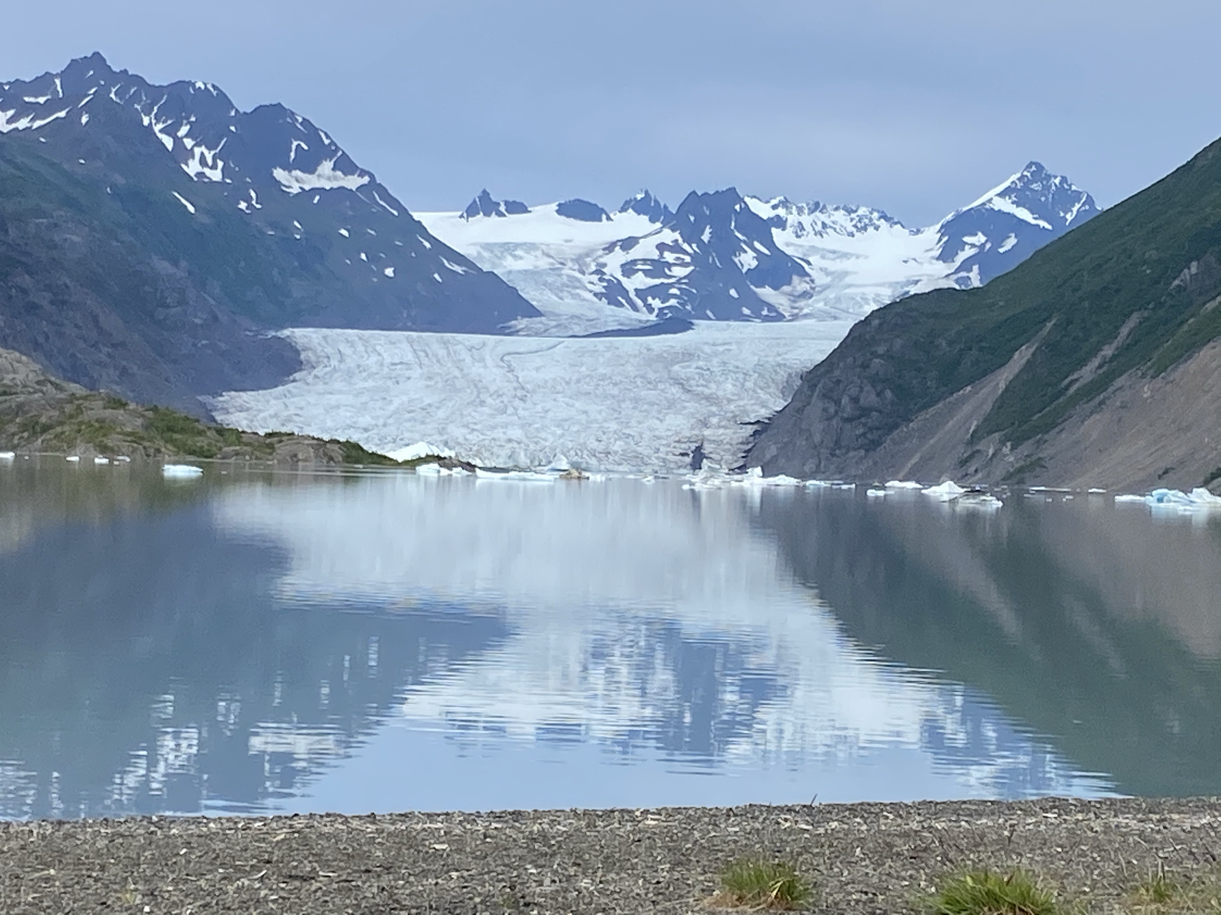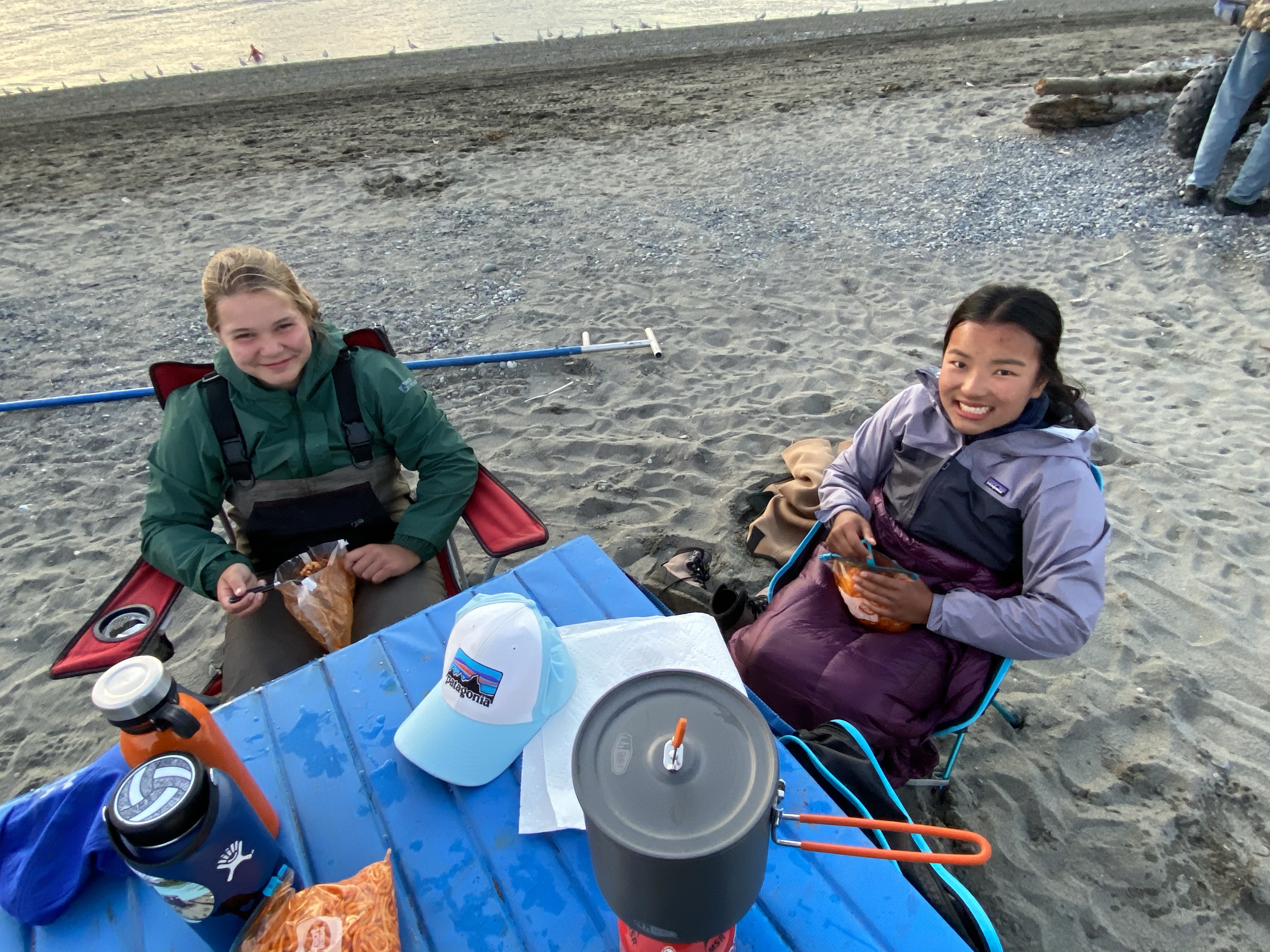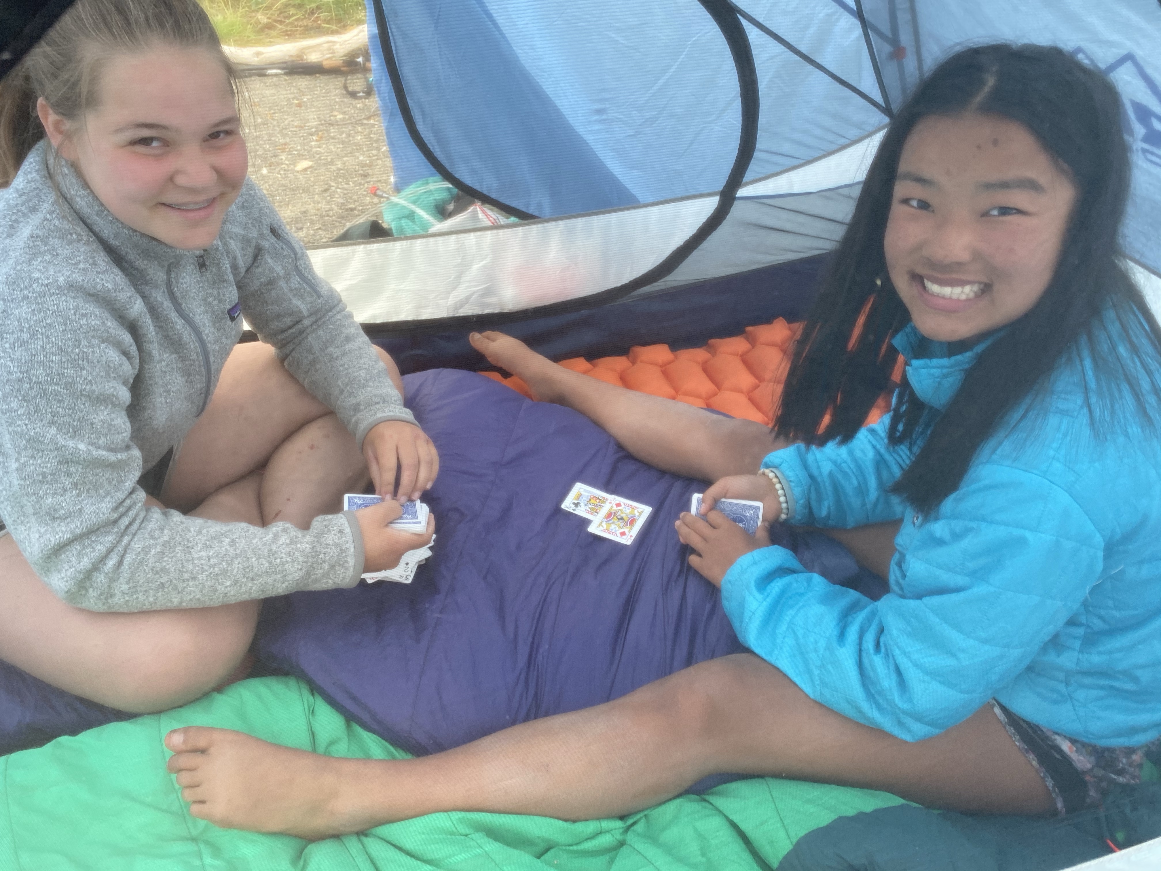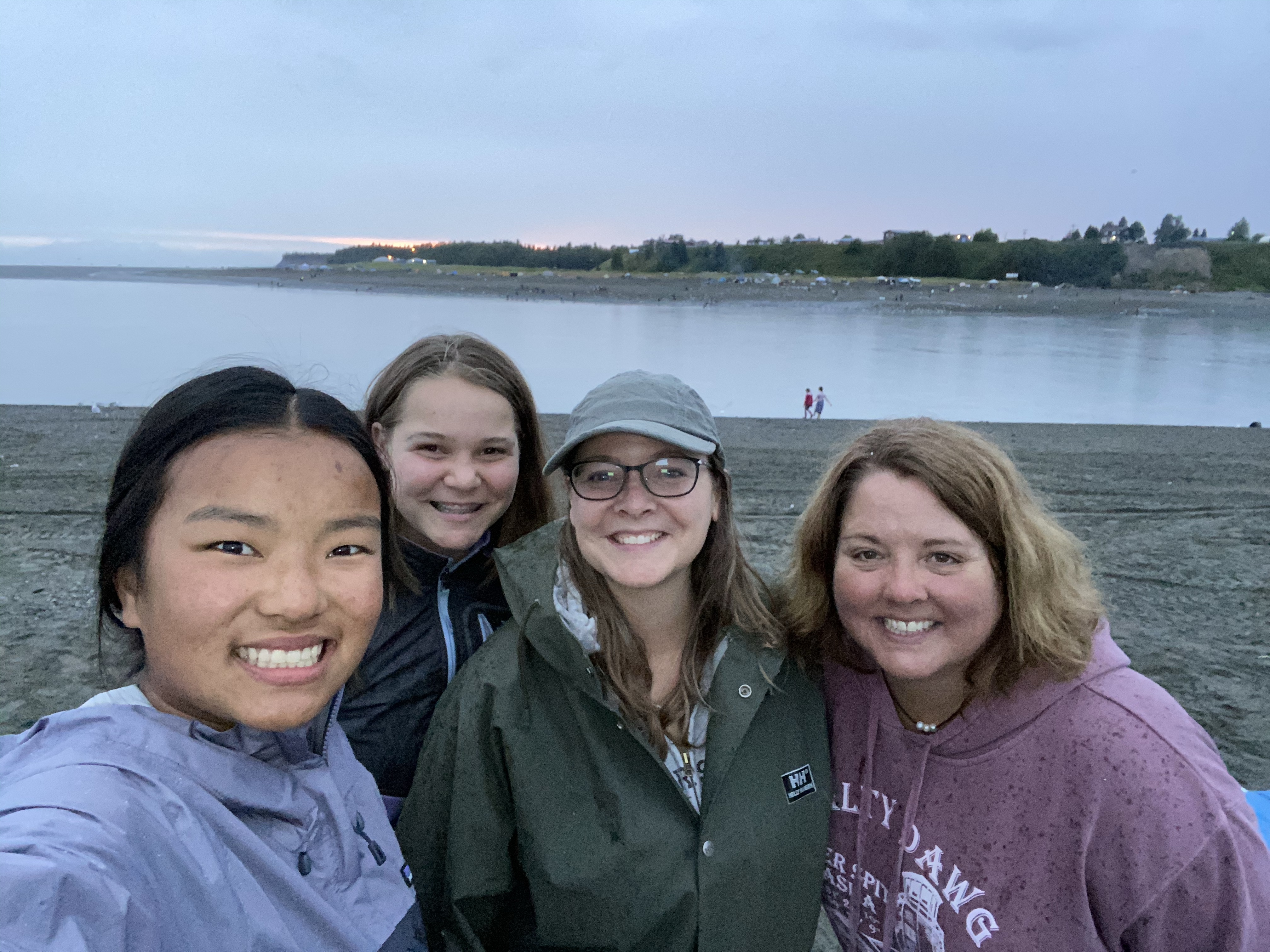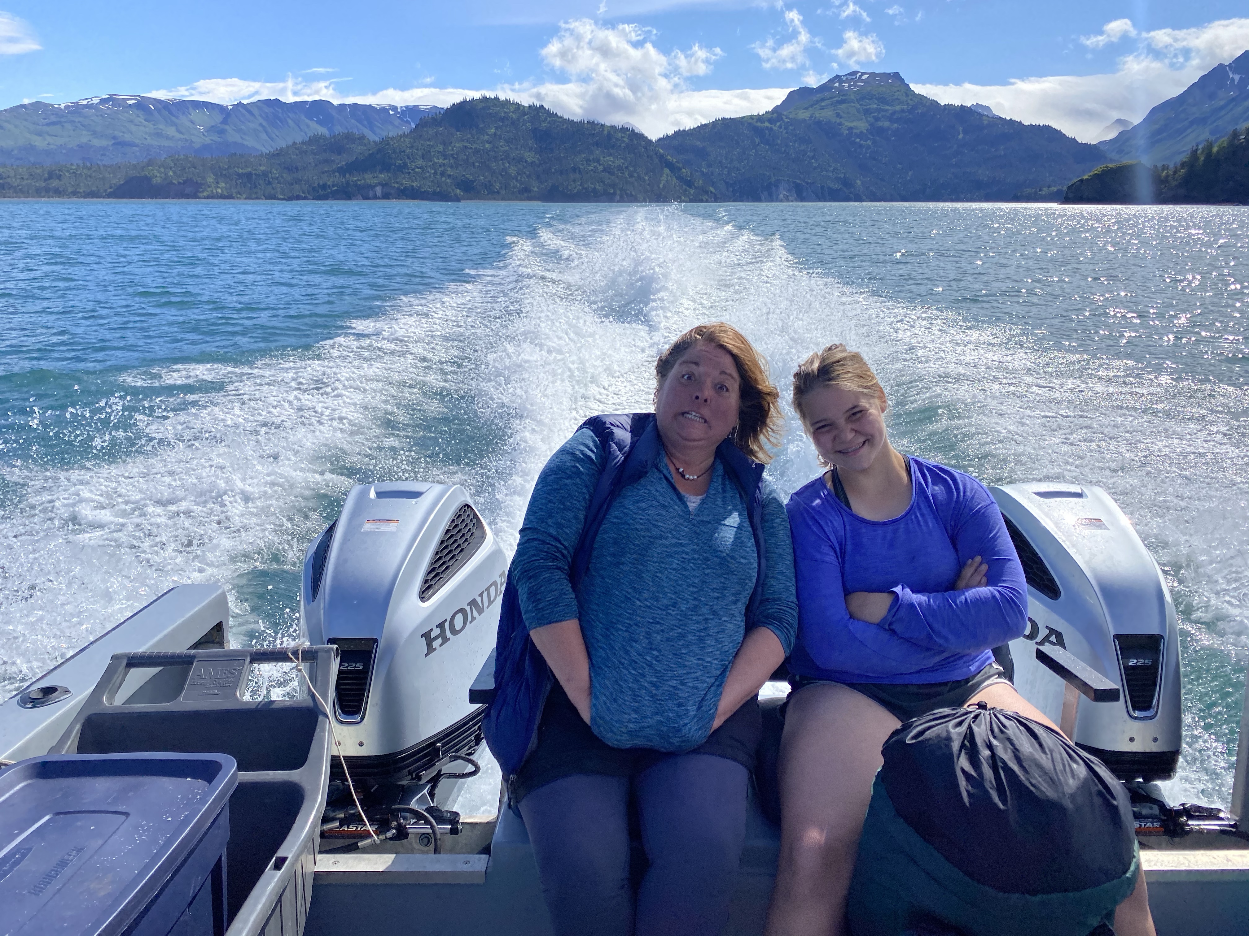 Next came the backpacking excursion to Grewingk Glacier. I’m not gonna lie, this one was so far outside my comfort zone I almost bailed at the last minute. It started calmly enough, with a five-hour drive to Homer and a comfortable cabin. We ate in a restaurant for the first time in months, and it felt so strangely normal. (The restaurant was Fat Olives – everyone wore masks, and they only allowed three tables in the entire dining room.) Back at camp, the girls played volleyball and demolished us in a game of Pitch. It was a lovely evening.