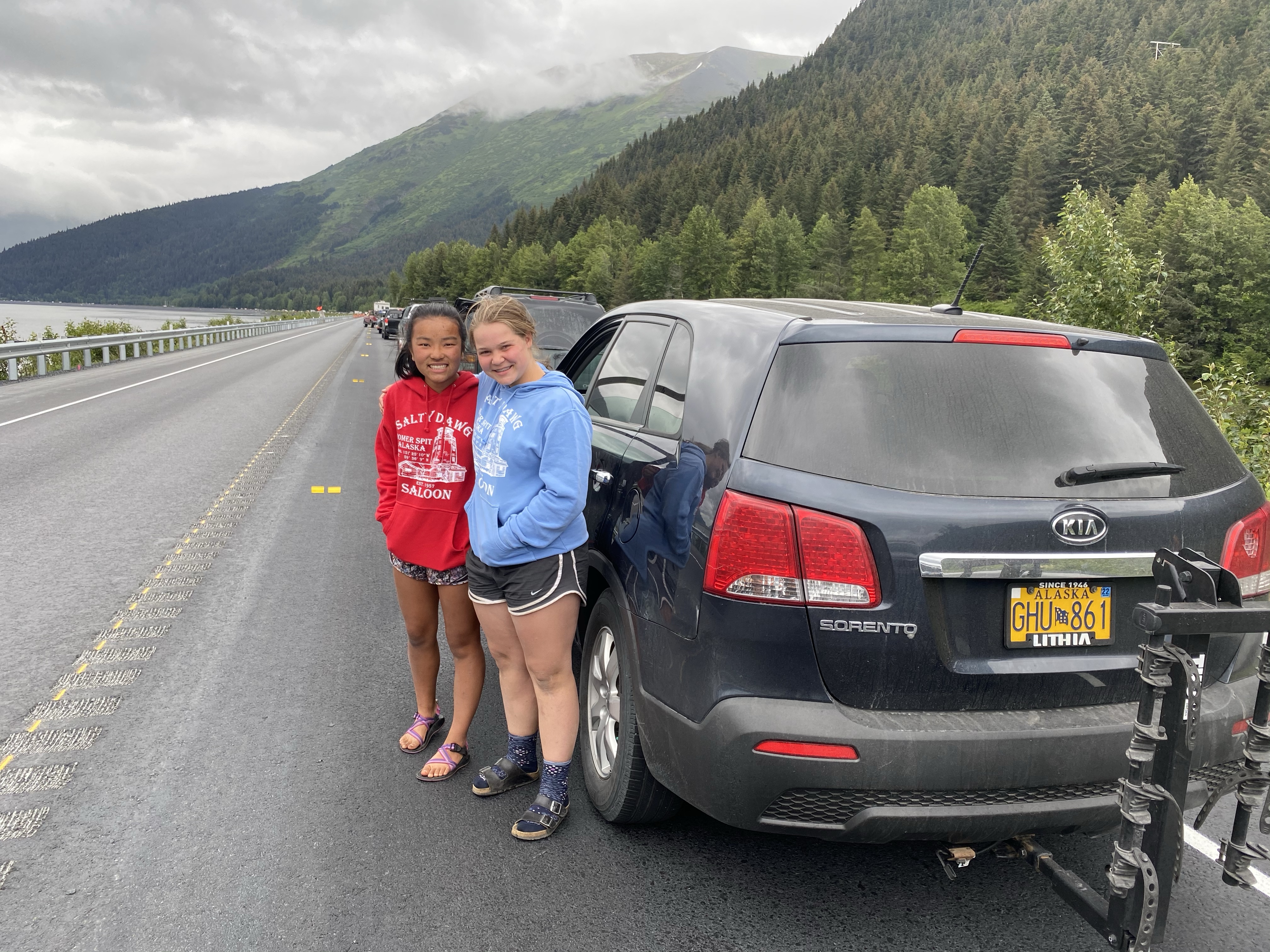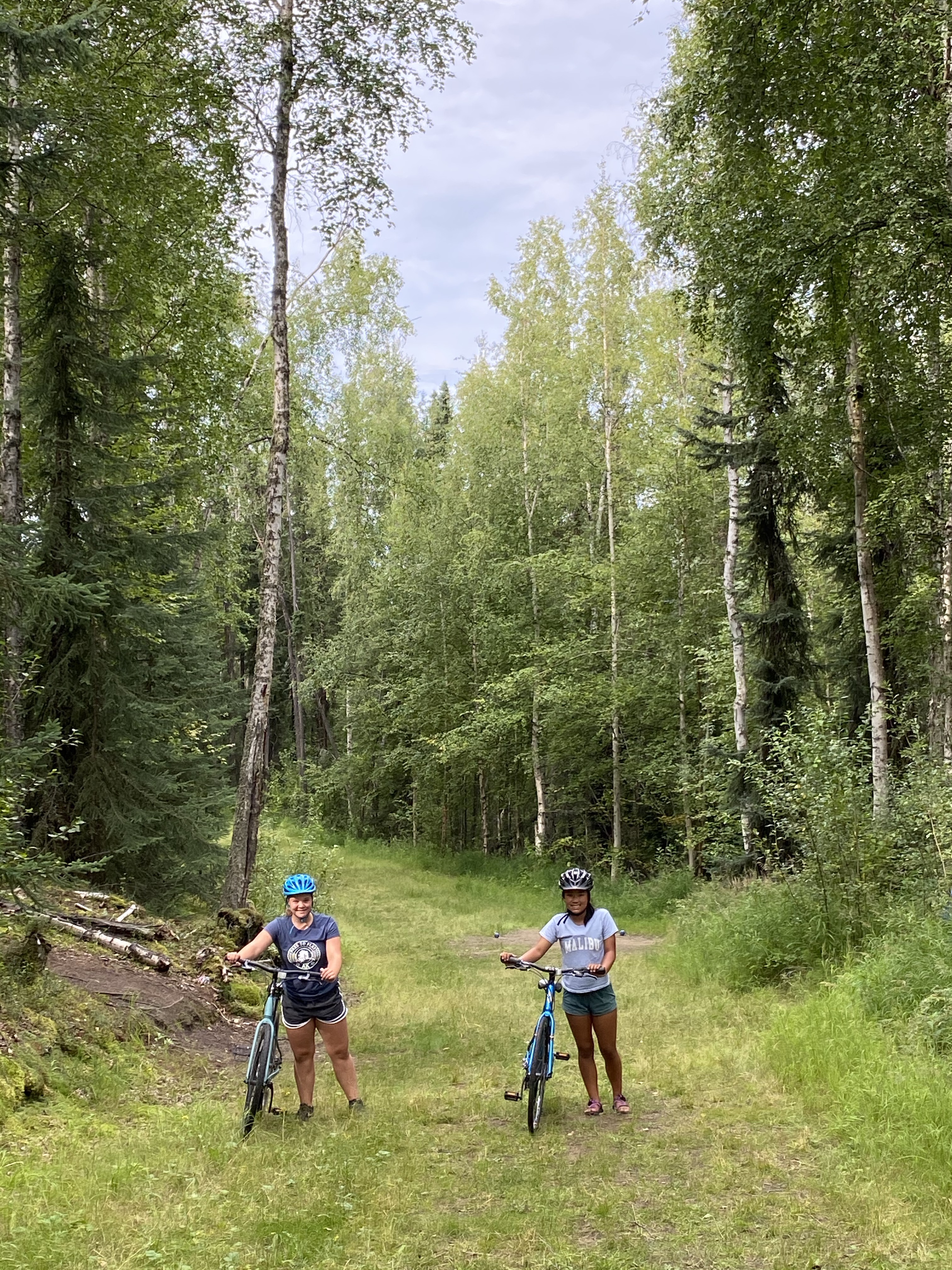 We stopped in Denali National Park to break up the drive, which was a ghost town due to the pandemic. No tour busses, no hikers, no Husky puppies. We did see spectacular scenery and a few caribou, but the trail we planned to hike was closed due to an animal kill. We let the girls bike along the road on our way out, which was mildly stressful since Maggie was swerving all over the place and even looking backwards as she went around corners on the wrong side of the road. Even so, the stop fueled our tanks and we pushed through the last hours to Fairbanks.