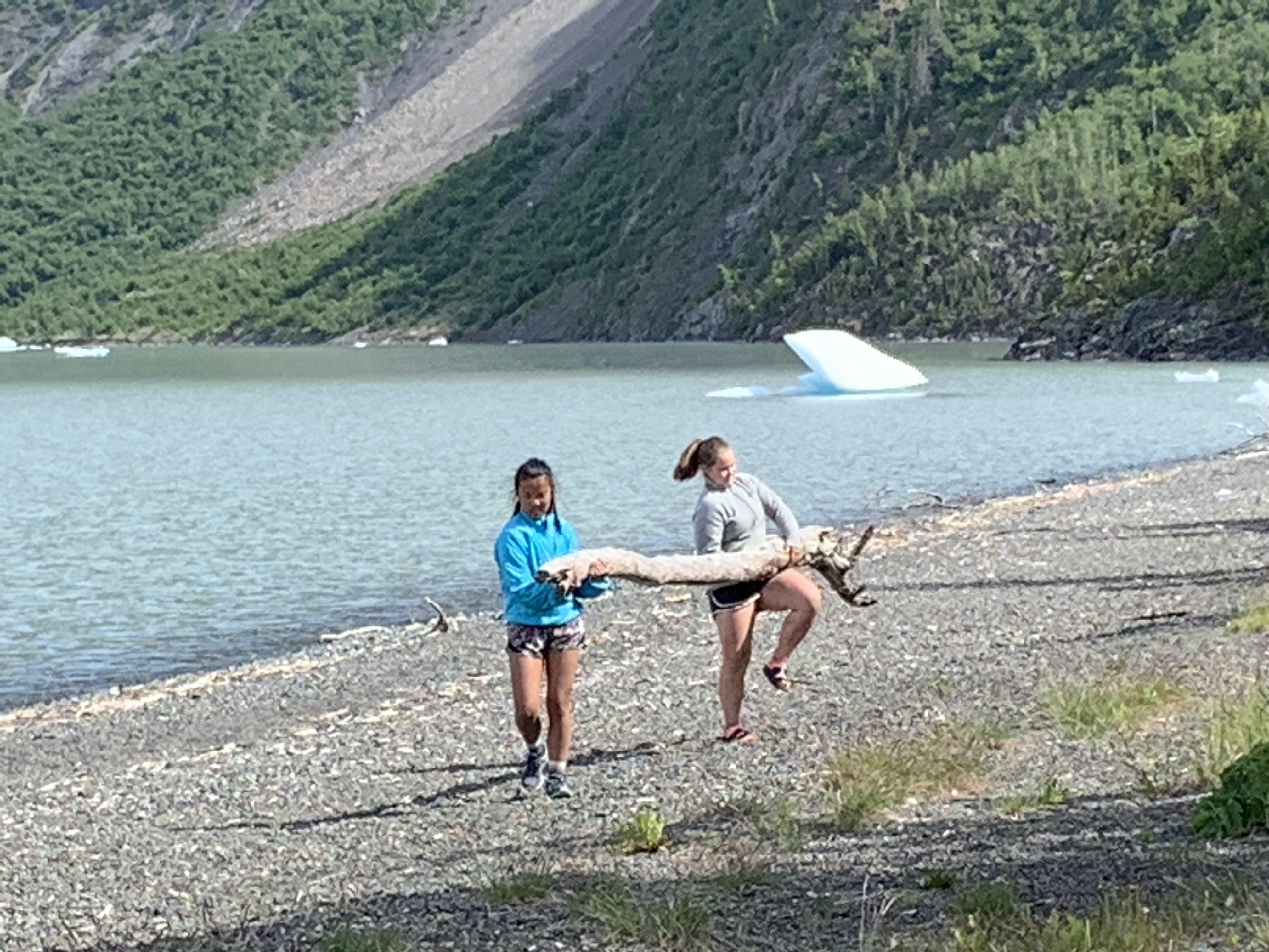 The hike from the beach to the lake was flat, relatively easy, and breathtaking. The girls took the lead and were patient with the slower pace of their mothers. Maggie was especially capable and confident, and the only one in the group who had practiced using bear spray. She’s learned many valuable wilderness skills from her dad!