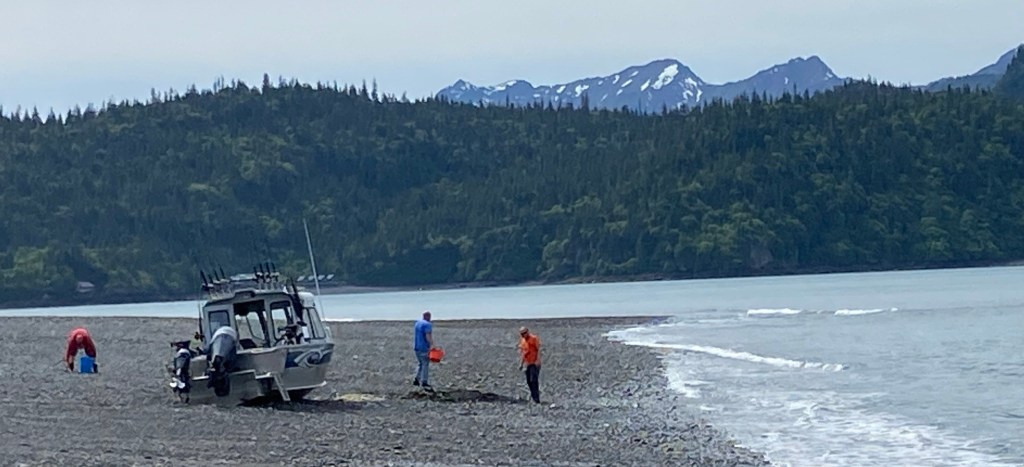 We decided not to take our chances. Nancy stayed at the truck to finish loading, while I ran down the beach to pull the girls out of the water. They understood the urgency of the situation, and in record time the nets were broken down and strapped to the truck while I disposed of our double doodies. I might dread driving Kenai Beach, but sticking around during a tsunami warning is even scarier.