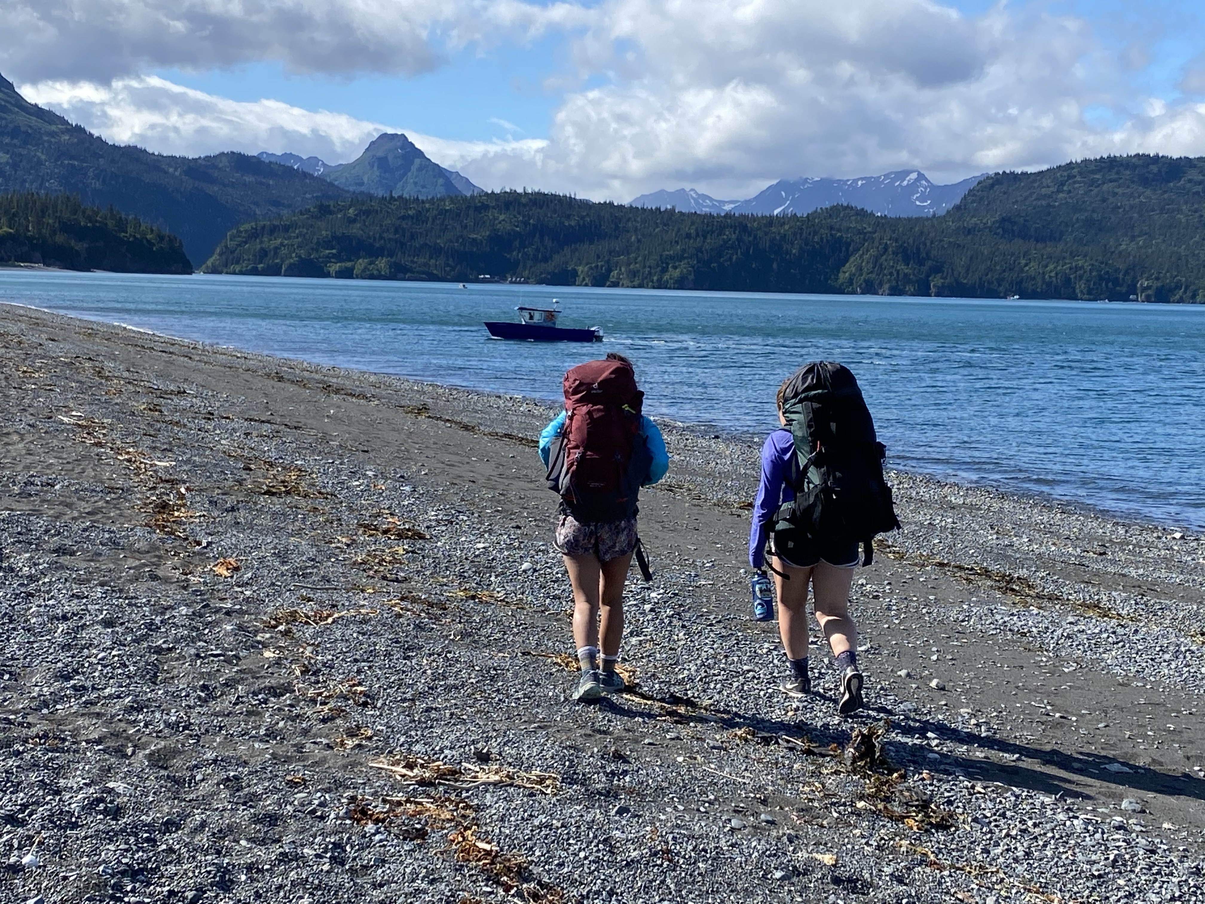 And that’s how I ended up on a remote shoreline with no one but my dear friend and our two teenage daughters, watching the water taxi motor away and leaving us 100% alone. We tipped the captain cash and also gifted him a Ziploc of smoked salmon (at the last minute we decided not to carry potential bear bait in our packs, and he was quite excited to take it off our hands) so I hoped he would remember us fondly in case things went south.