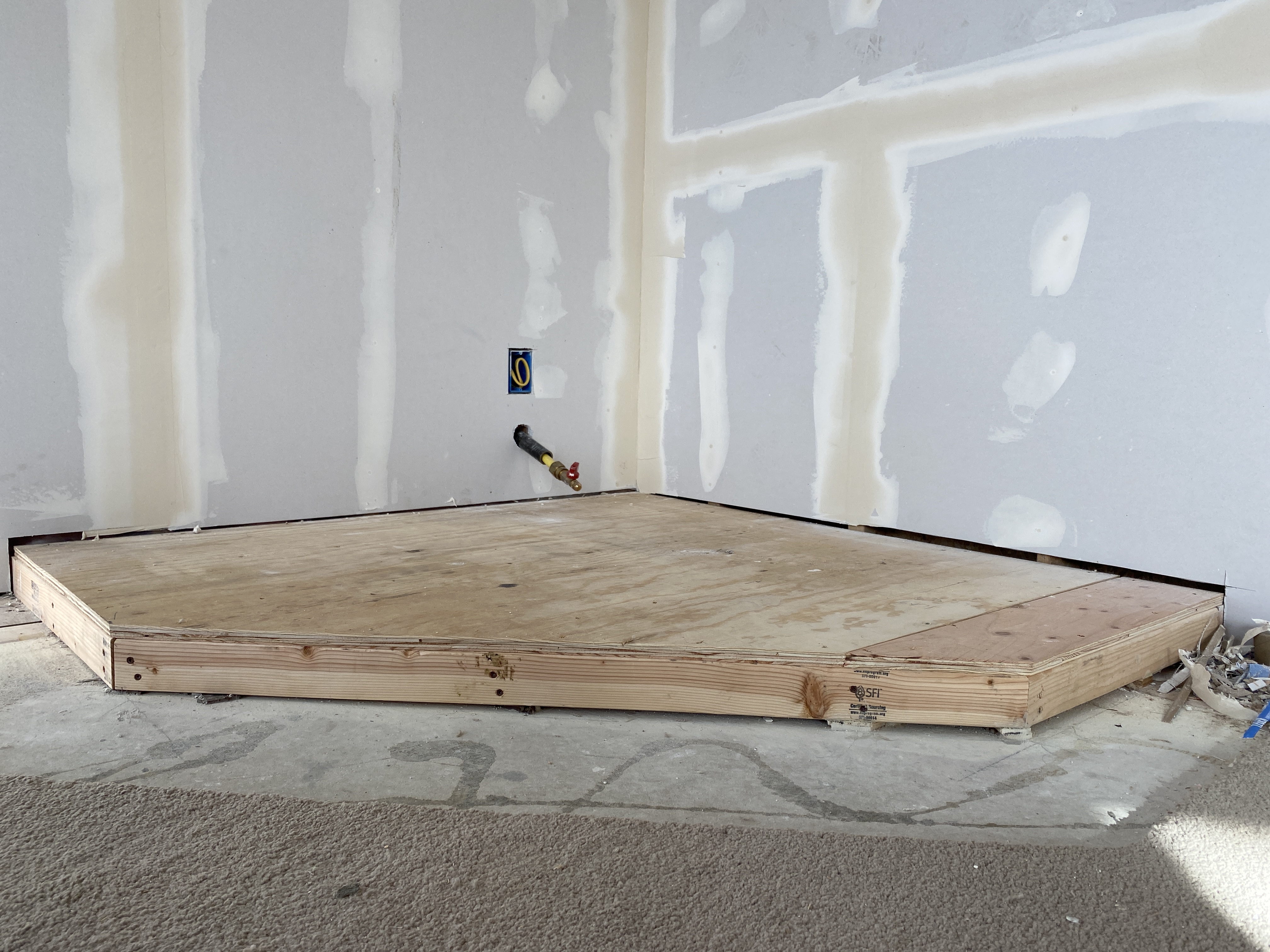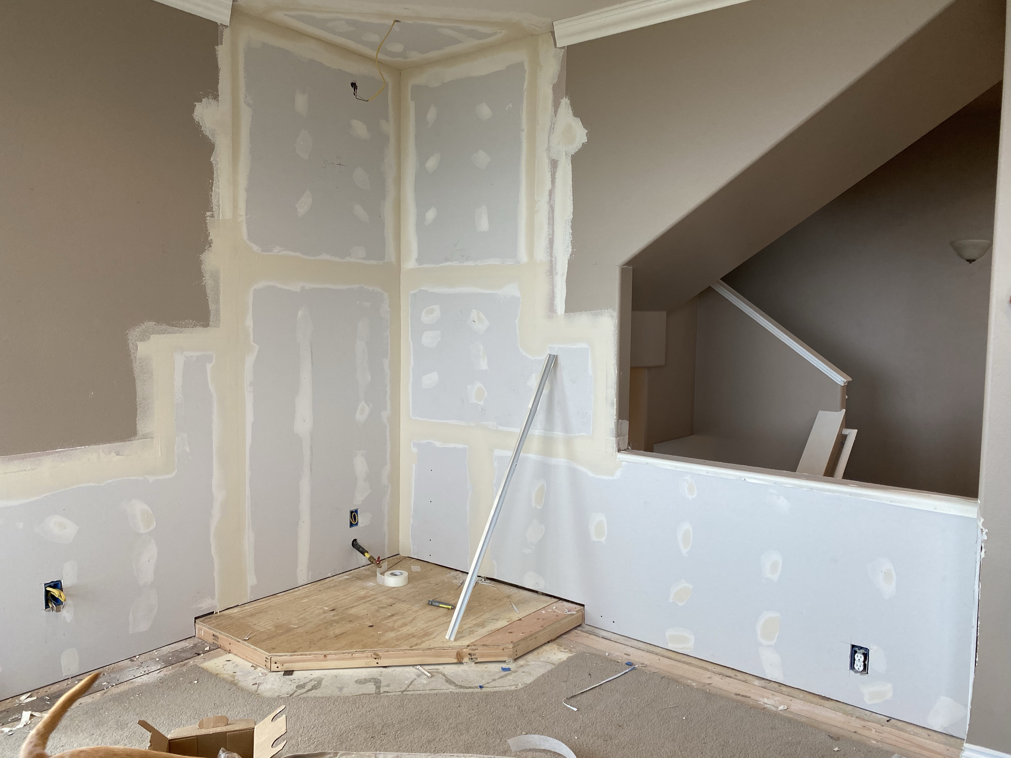 We hired out the drywall work, and that crew also built our hearth base.