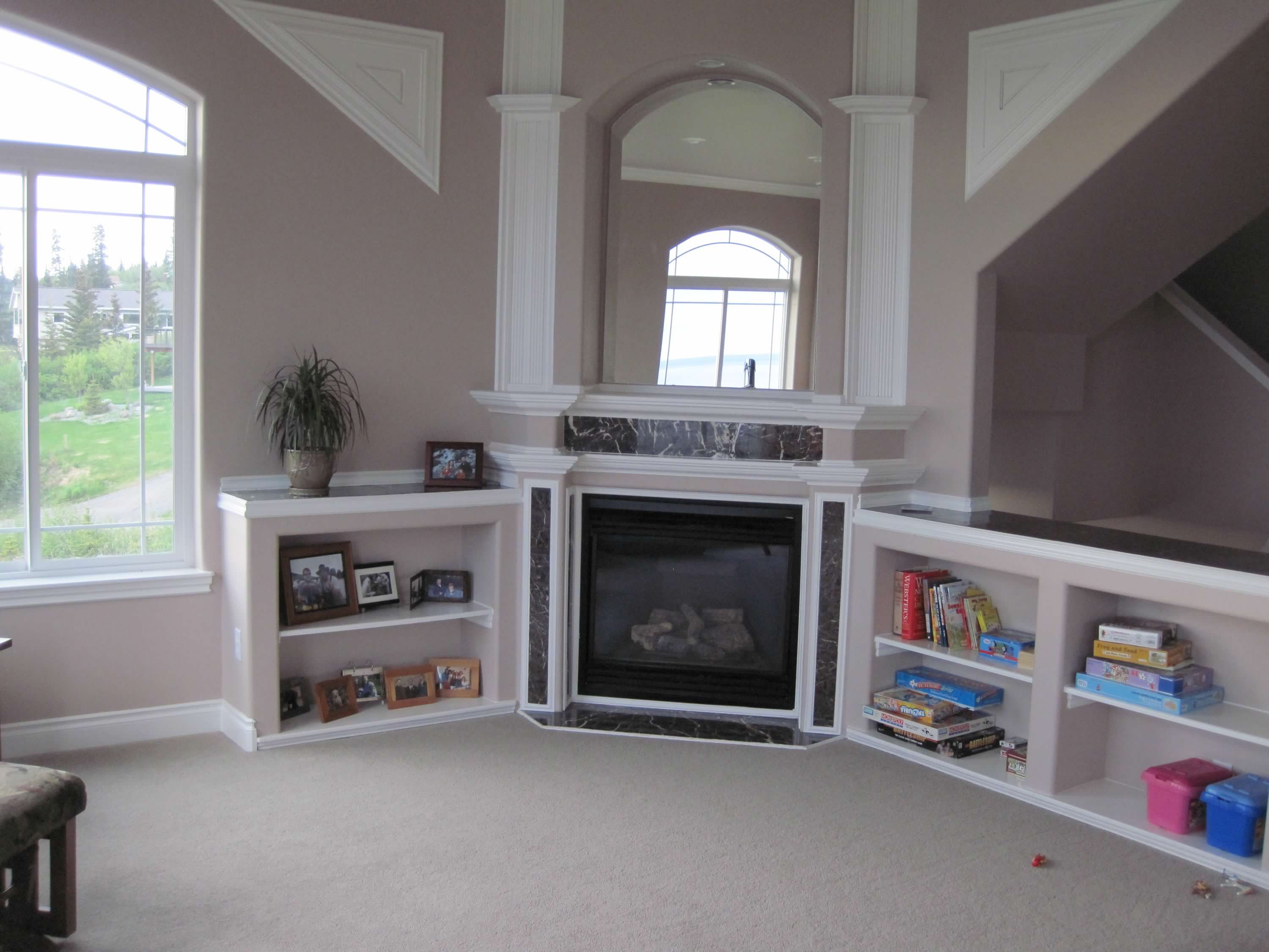 Now it was time for our team of contractors to return. They installed the tile and took care of the electrical work, trim, exterior pipe vent, and mounting the mantel.
