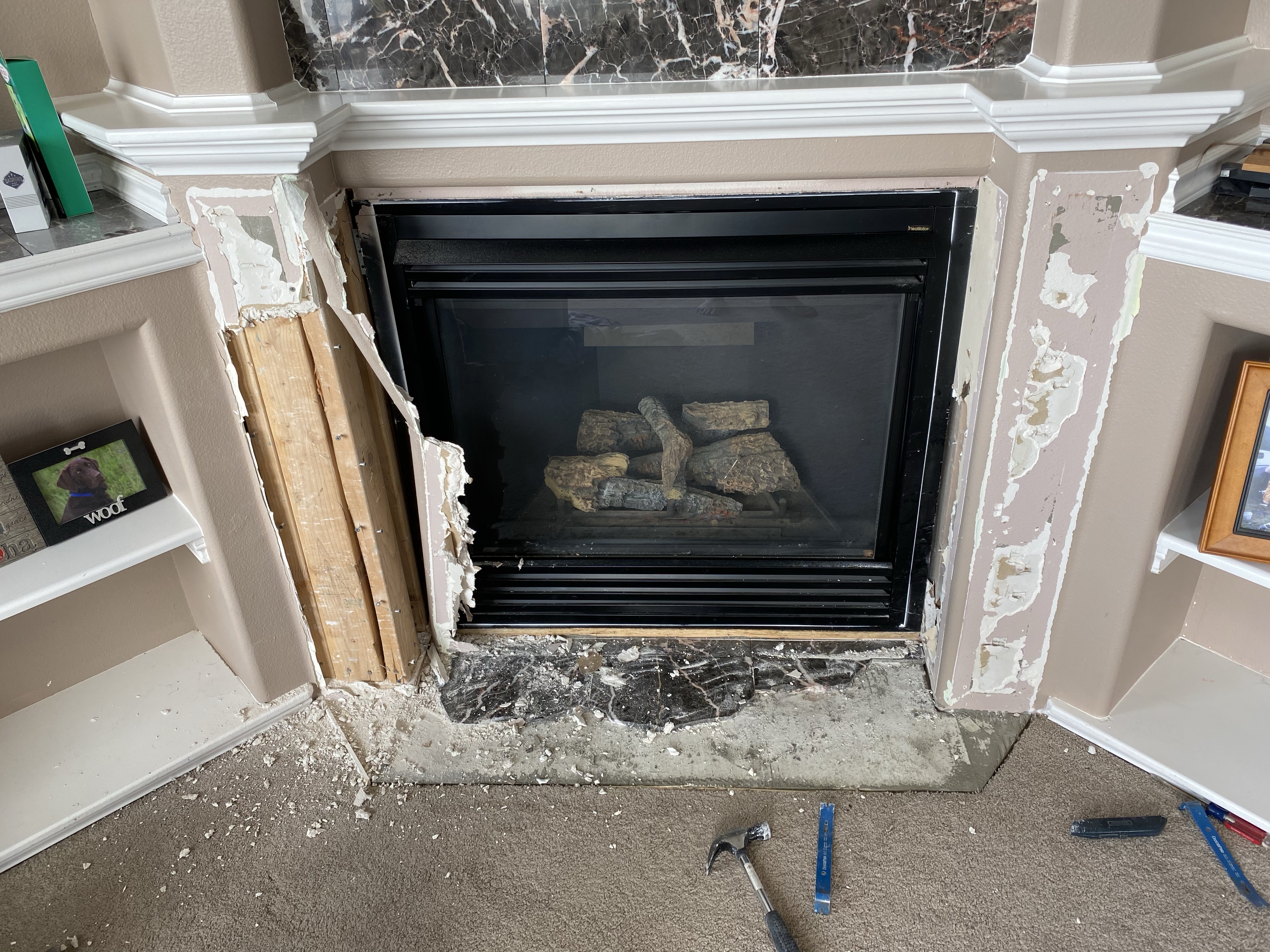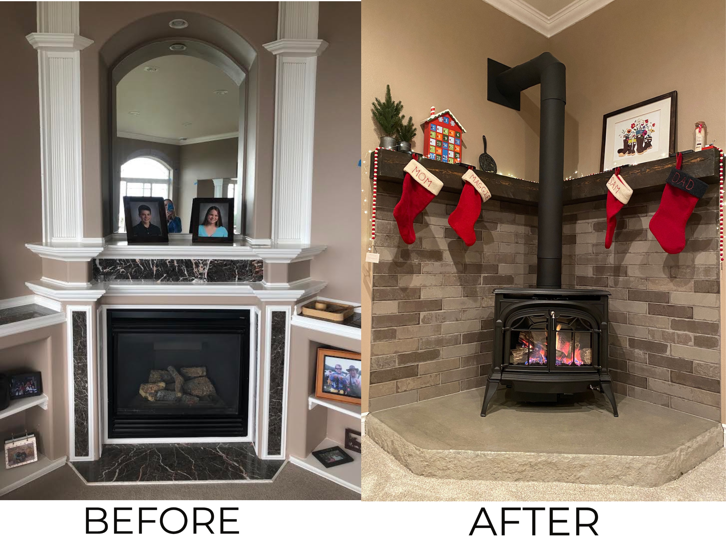Okay, okay… it’s gas. But it’s also beautiful. It looks nearly identical to the Vermont Castings wood stoves we installed in our previous homes, so we found ourselves all nostalgic and in love. Due to COVID we haven’t travelled for an entire year, which helped us afford this project. I was ecstatic with this spontaneous purchase (trust me, a rare and welcome emotion for 2020).