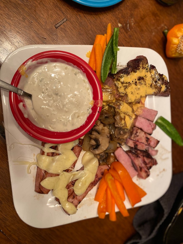 Even though I am not a huge ham fan, Team 4’s ham paired perfectly with the Gruyere sauce. And that plate was full of love: I still can’t believe my mushroom-loathing husband sautéed me up a whole pan of them to serve alongside slivers of steak!