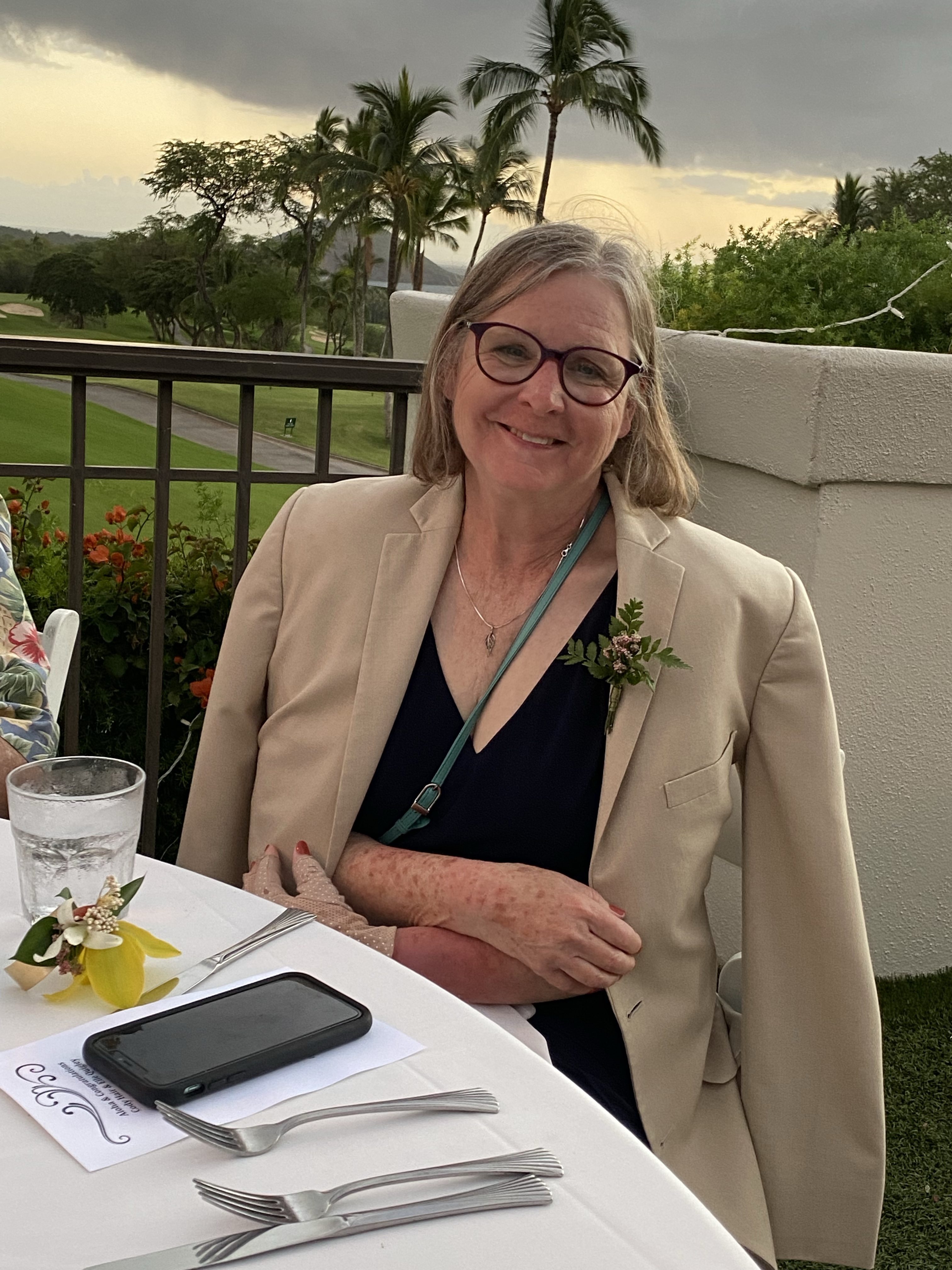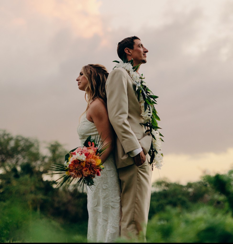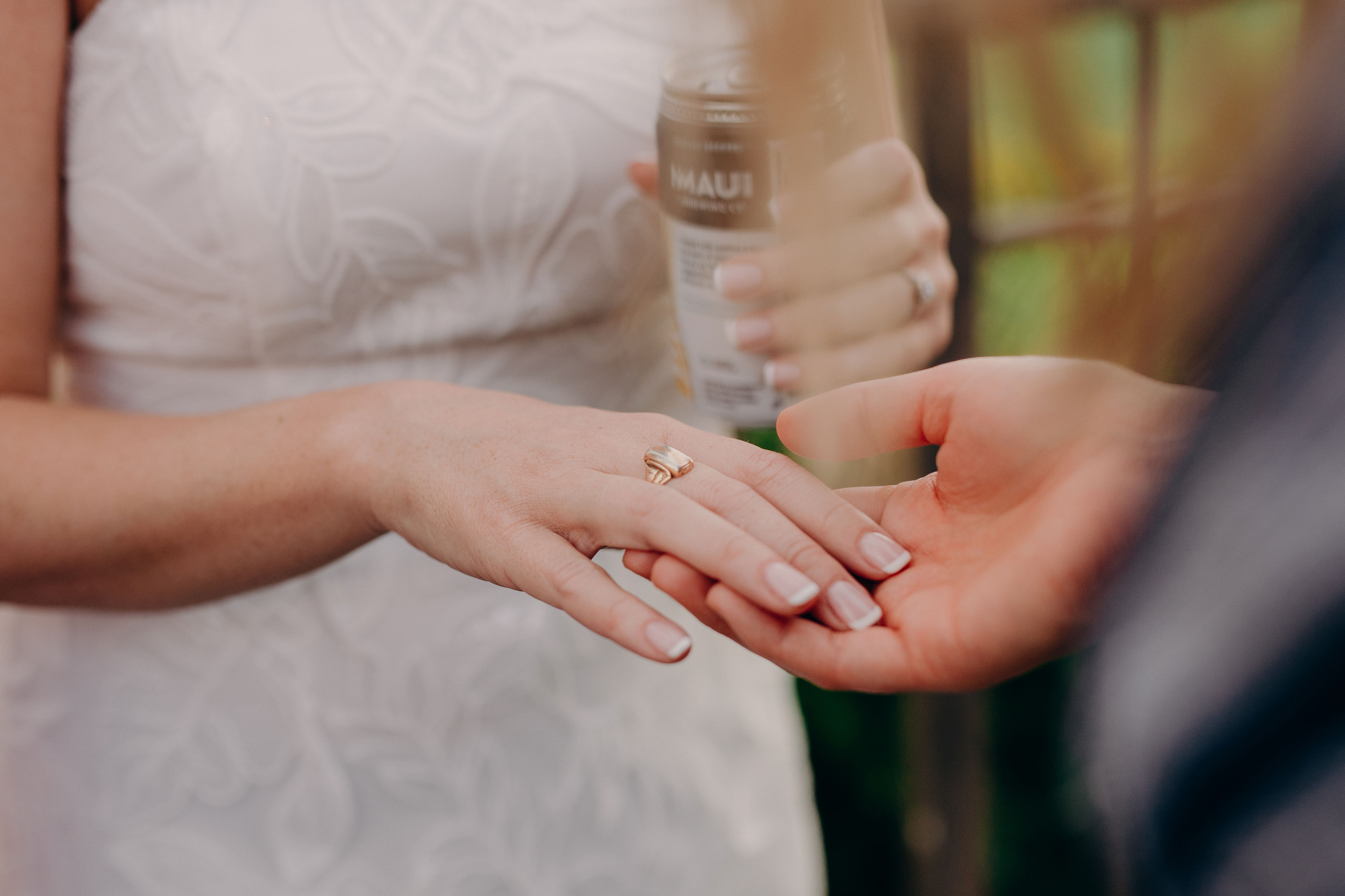 The ceremony was idyllic. We gathered on the edge of a golf course that overlooked the Pacific Ocean, surrounded by palm trees and flowers. There was ukulele music and all the positive energy that comes from the blowing of a conch shell.