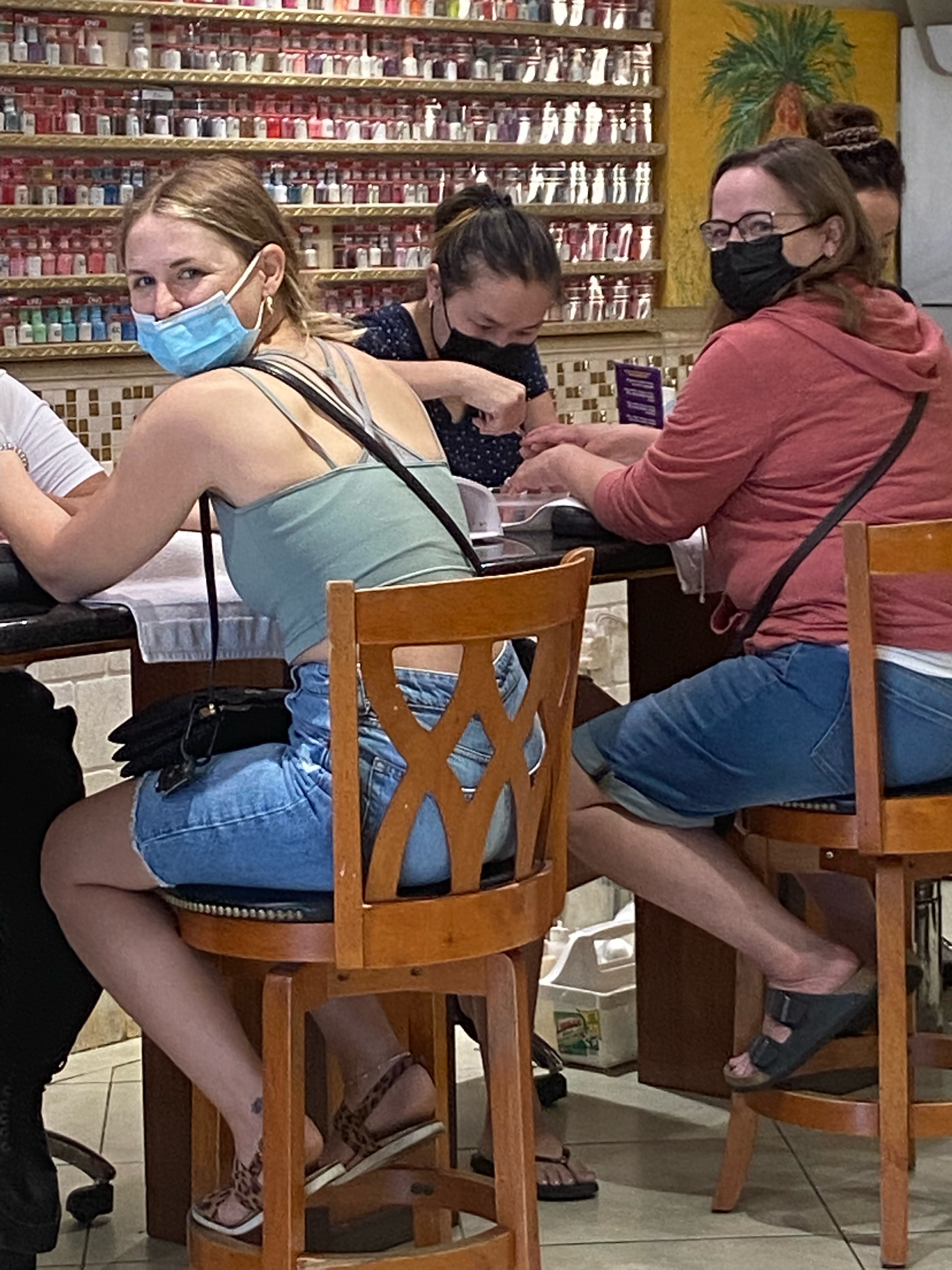 In the end she decided to go through with the manicure, so the morning of the wedding my mom, daughter, sister and I (how special is that?!) walked across the street for nail appointments.