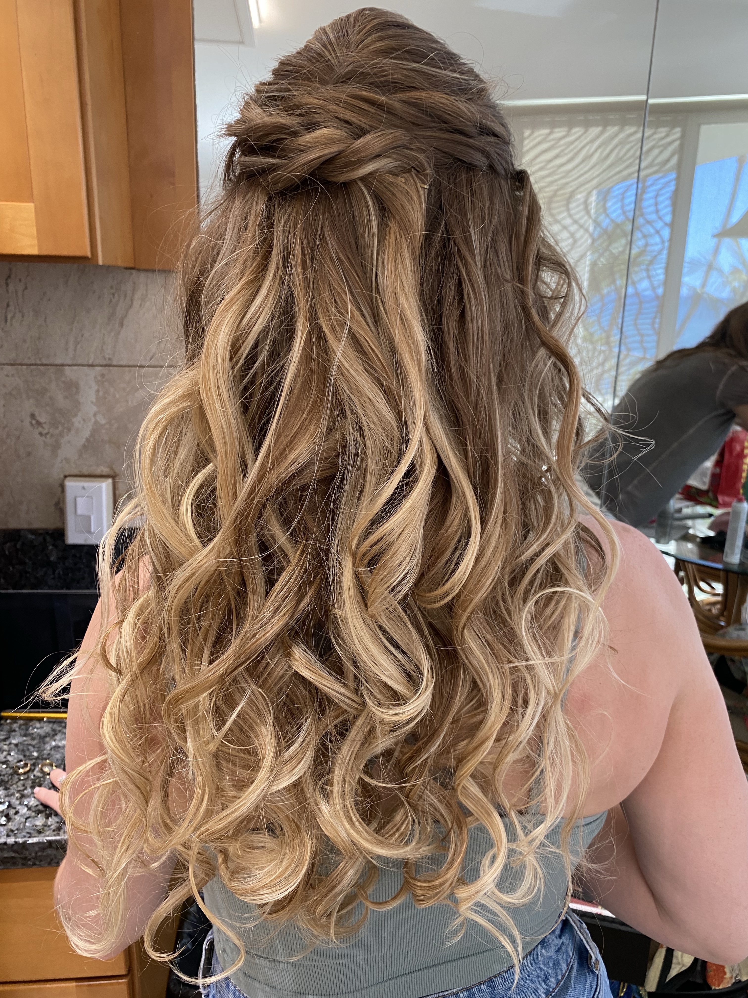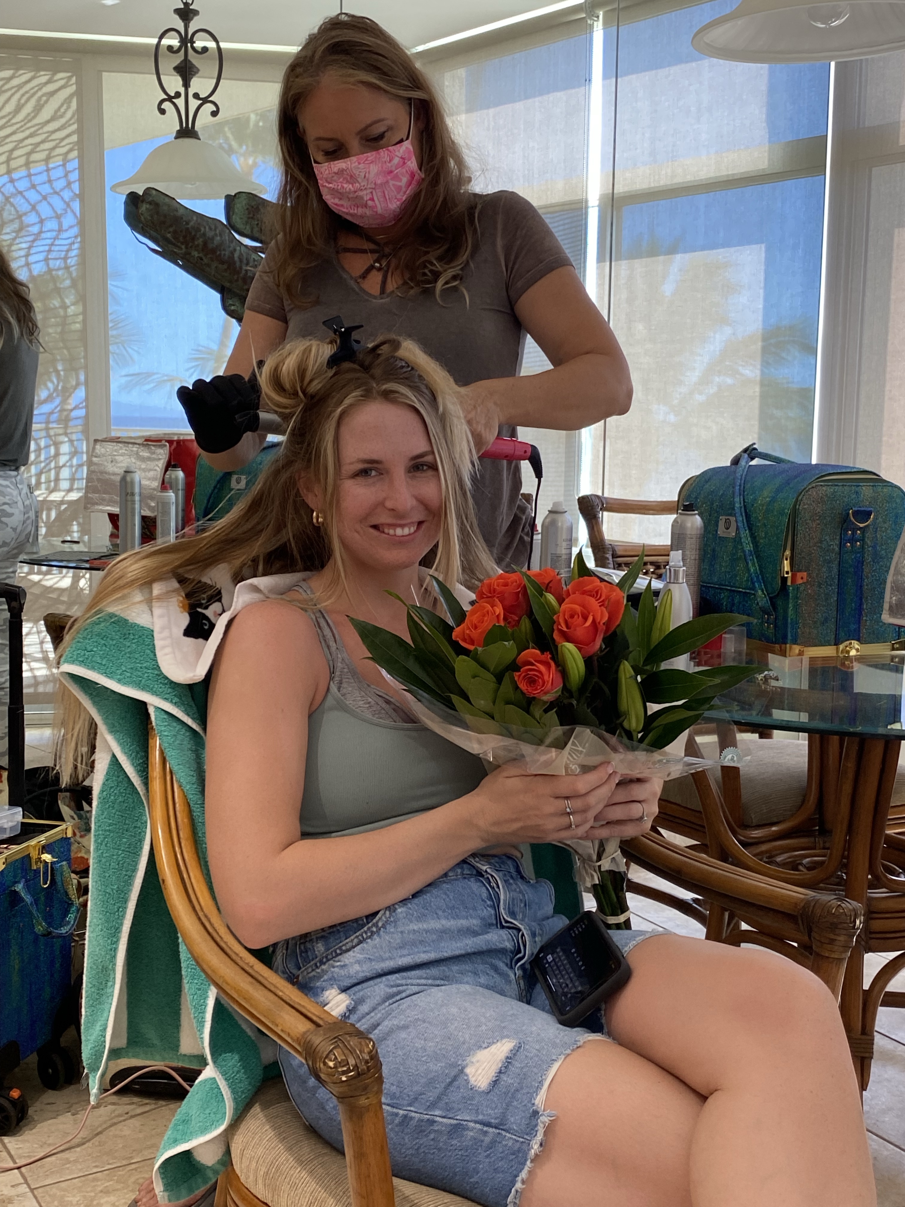 On to hair and makeup! We got ready in the spacious condo that Cody’s parents rented, but it didn’t have AC and we were soooooo hot. The poor stylist was having hot flashes, but she still took her time to make sure Elle’s inner glow fully shined.