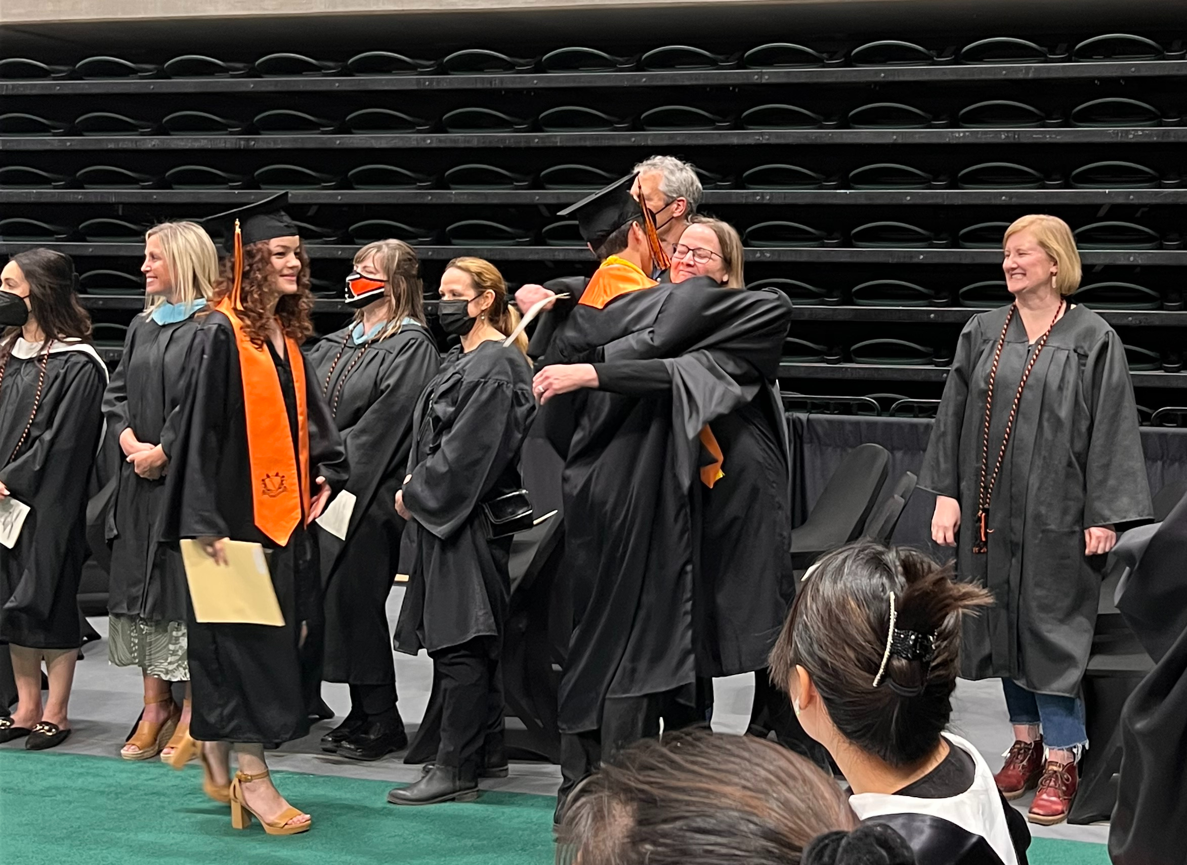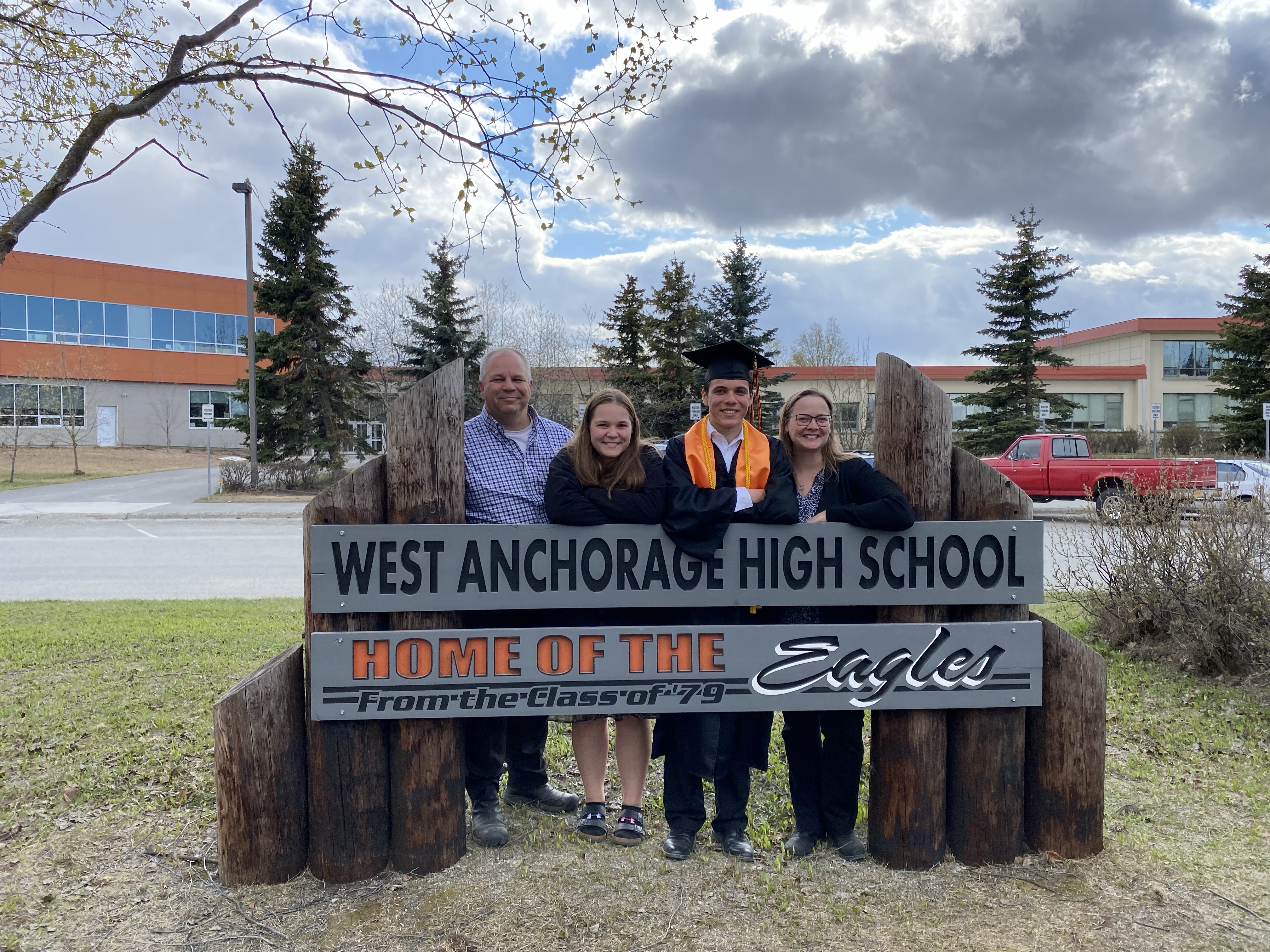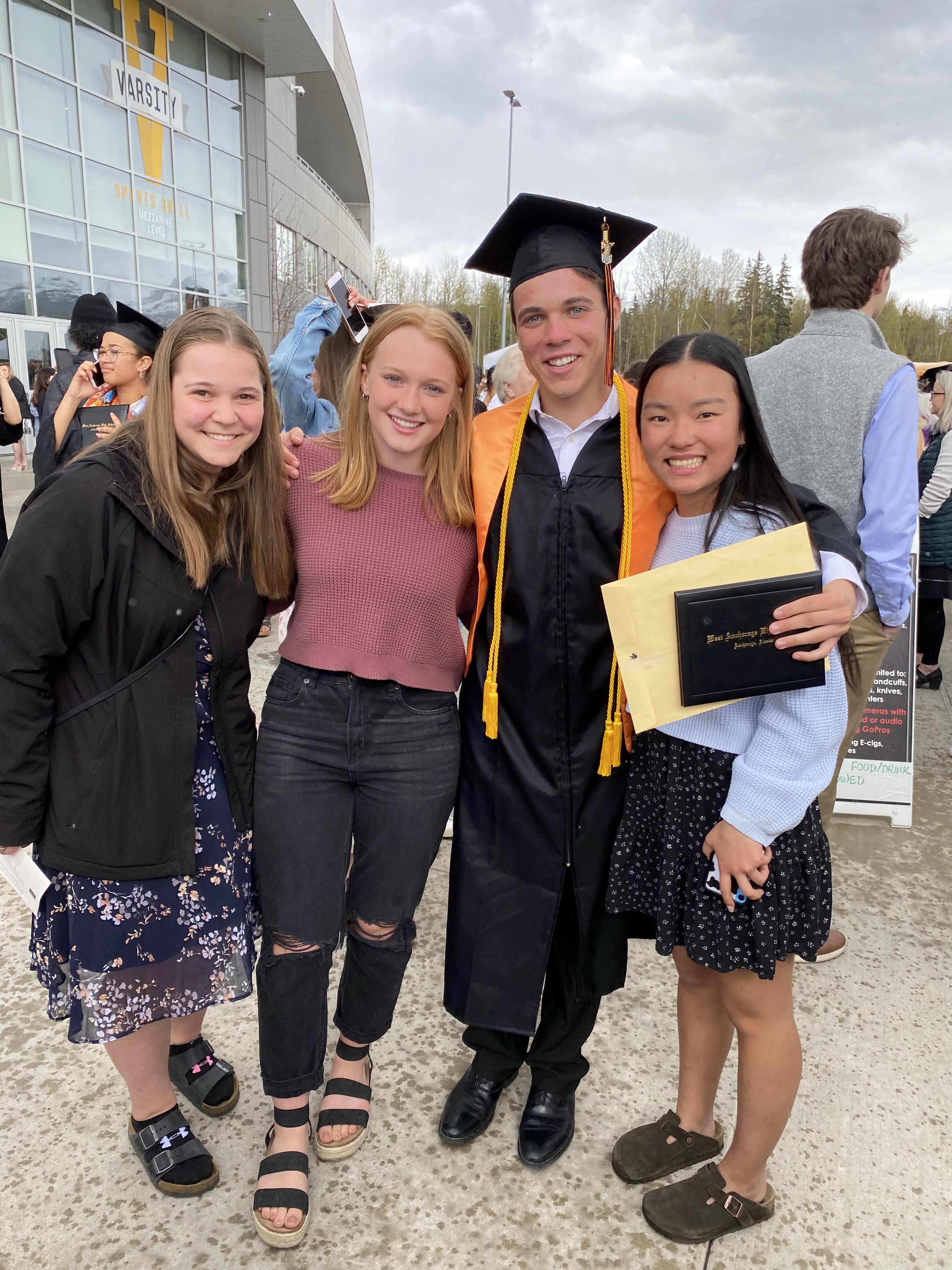By the time graduation rolled around, we were all more than ready. The ceremony was held at the Alaska Airlines Center, and many of the speakers reflected upon all that this class has endured, from a magnitude 7.1 earthquake during 2nd hour of their freshman year to a global pandemic that spanned their sophomore, junior, and senior years. As a staff member, I got to be down on the floor and give Sam a huge congratulatory hug after he received his diploma.
