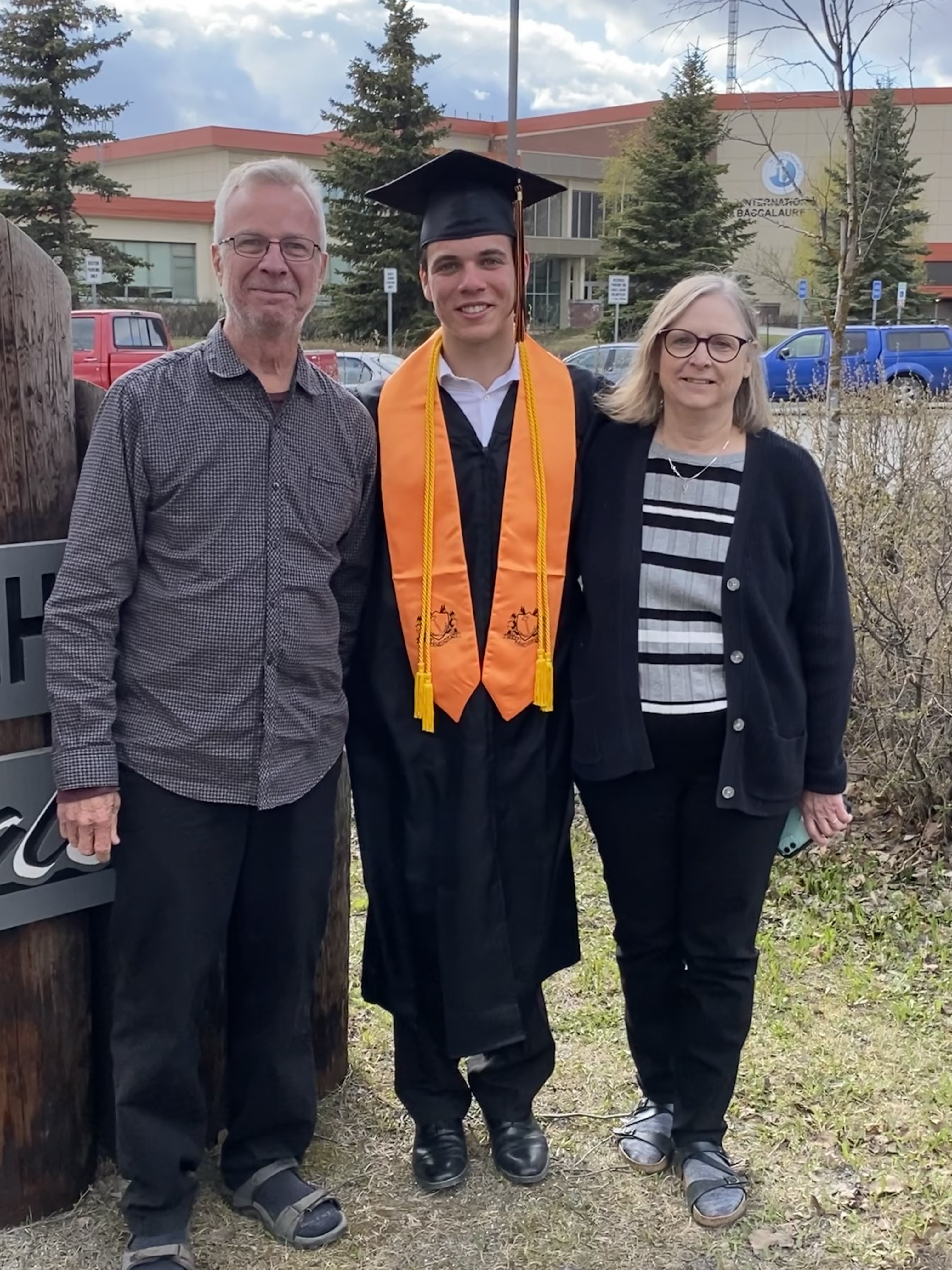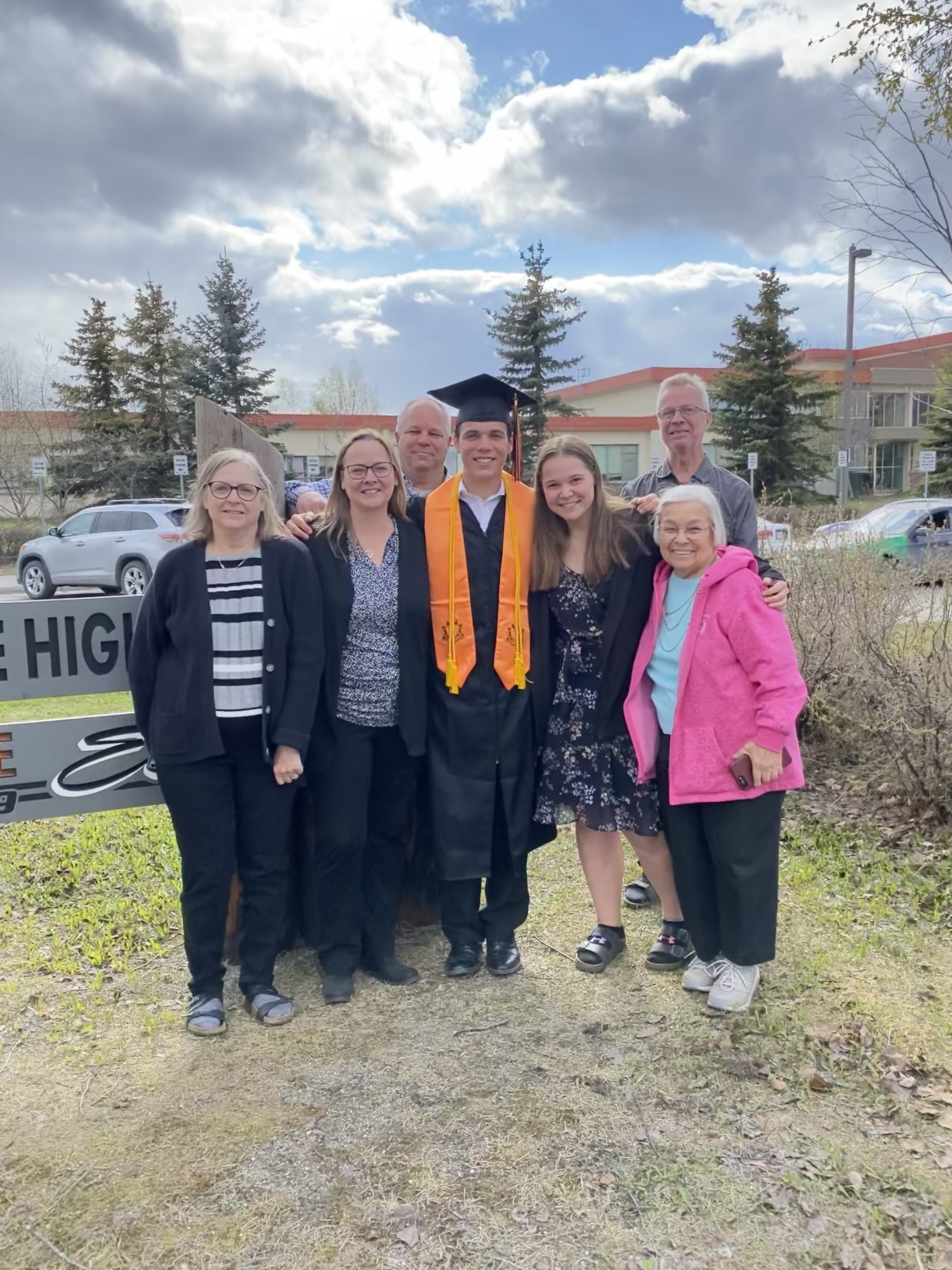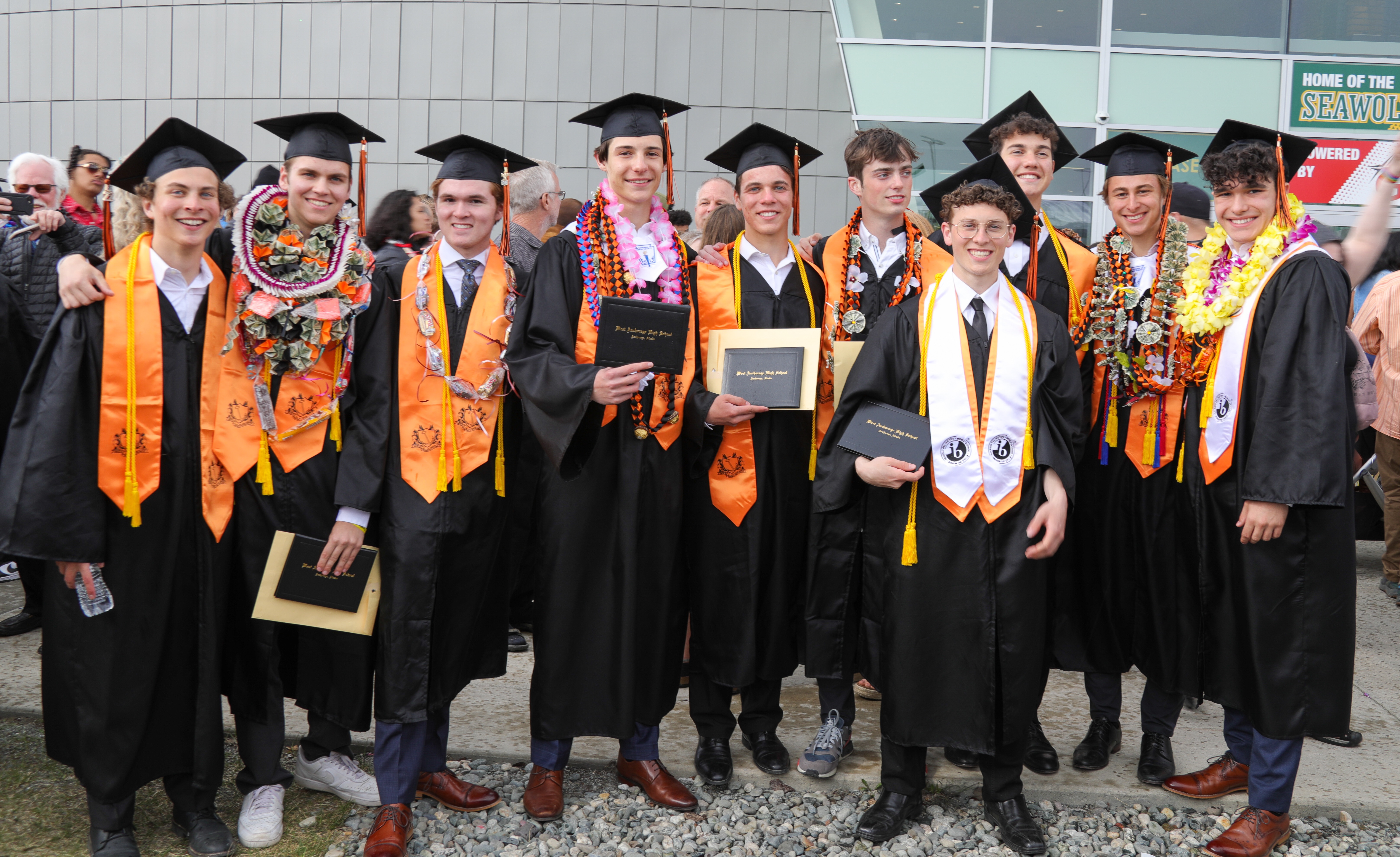 By the time graduation rolled around, we were all more than ready. The ceremony was held at the Alaska Airlines Center, and many of the speakers reflected upon all that this class has endured, from a magnitude 7.1 earthquake during 2nd hour of their freshman year to a global pandemic that spanned their sophomore, junior, and senior years. As a staff member, I got to be down on the floor and give Sam a huge congratulatory hug after he received his diploma.