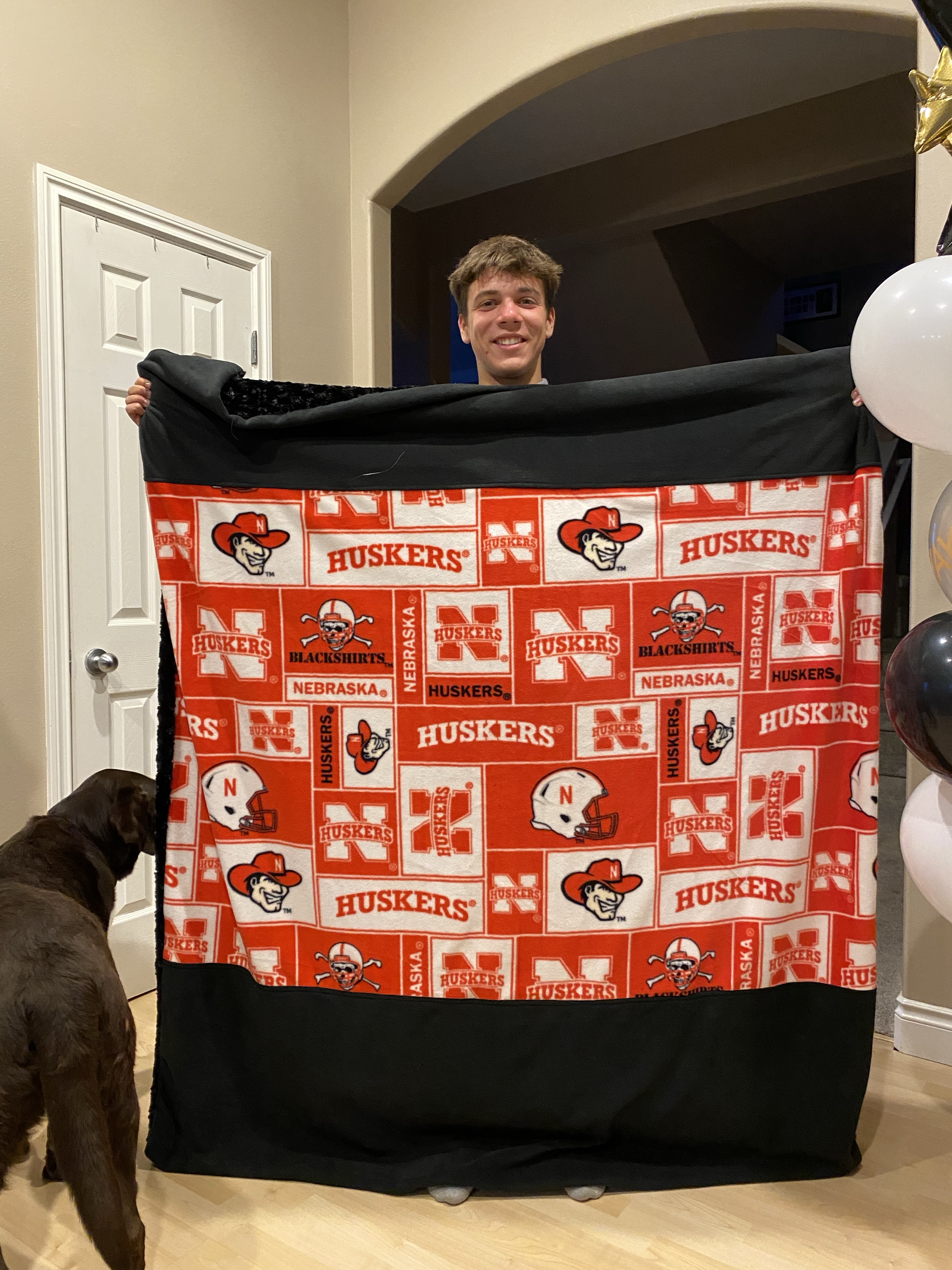 Sam first announced his decision at West High’s honor cord ceremony, but we kept the news a secret from family for another week so he could tell grandparents in person when they arrived for his graduation ceremony. It was a pretty sweet moment, and of course he was decked out in Husker gear as he shared the news.