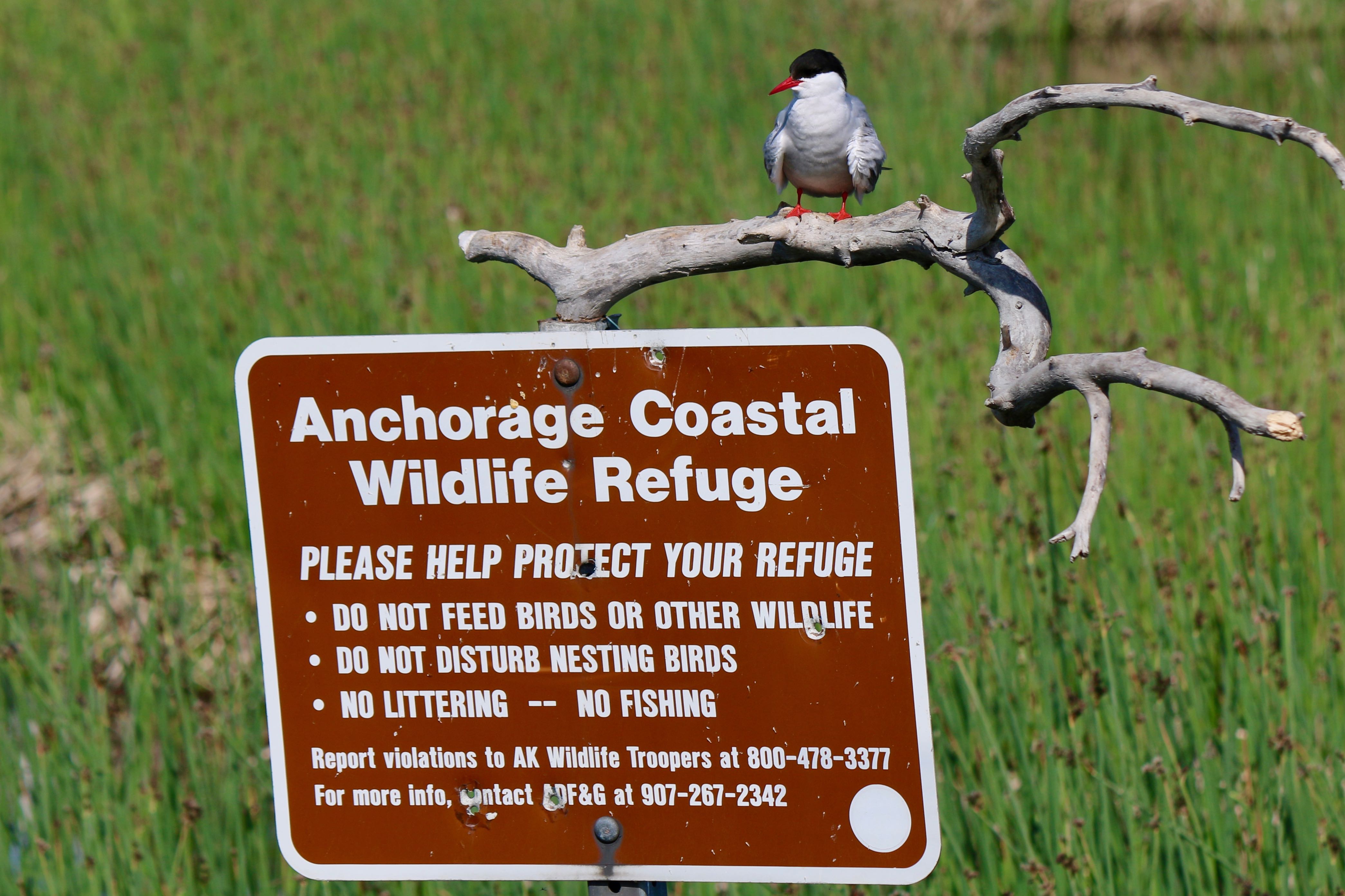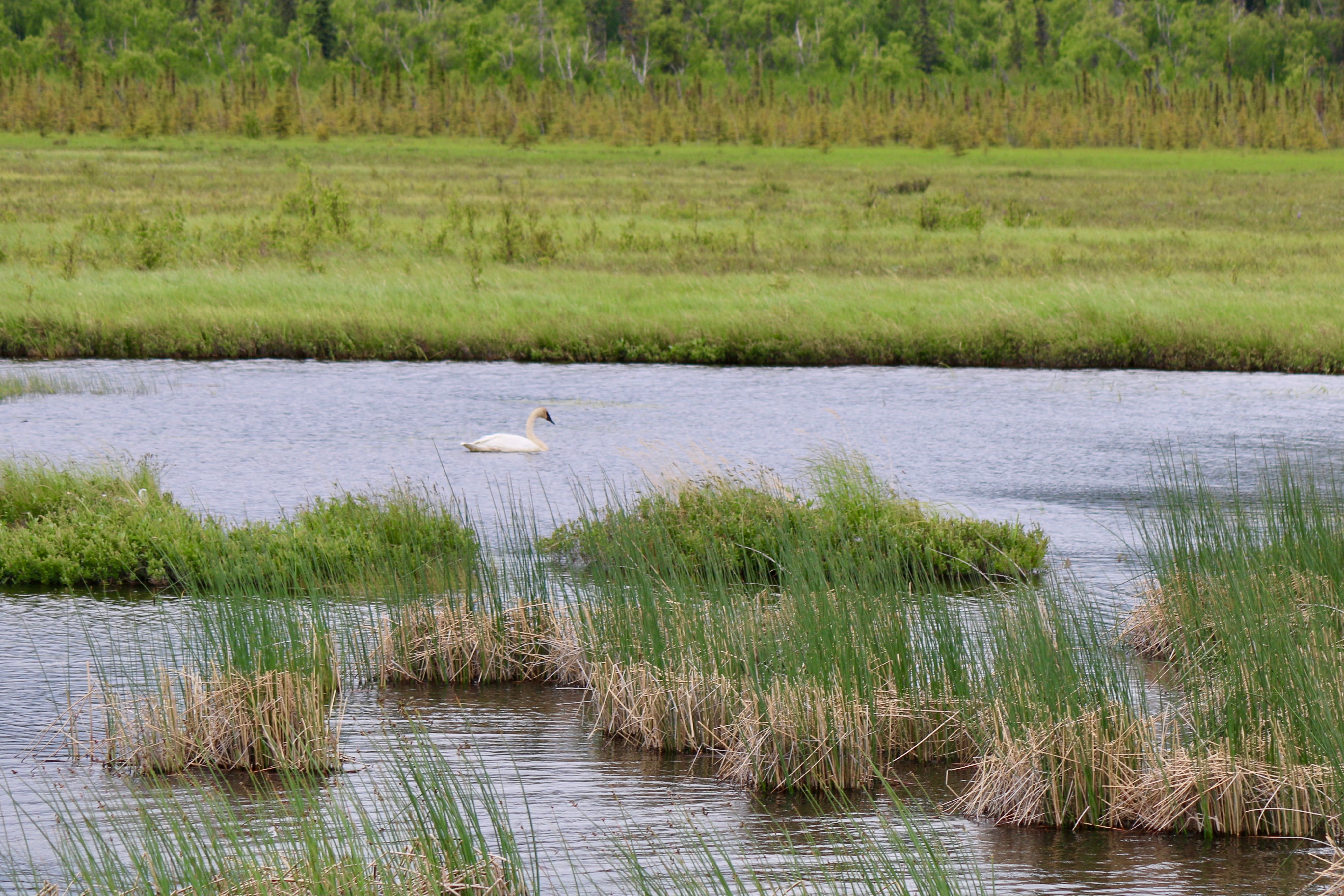 Some believe that swans only sing before their death, but I have my doubts about that. Then again, I can’t hear them either way. Birdwatching at Potter Marsh is a noisy affair, with squawking gulls, whipping winds, and (contrary to the National Geographic look of the photos) zipping highway noise in the background.