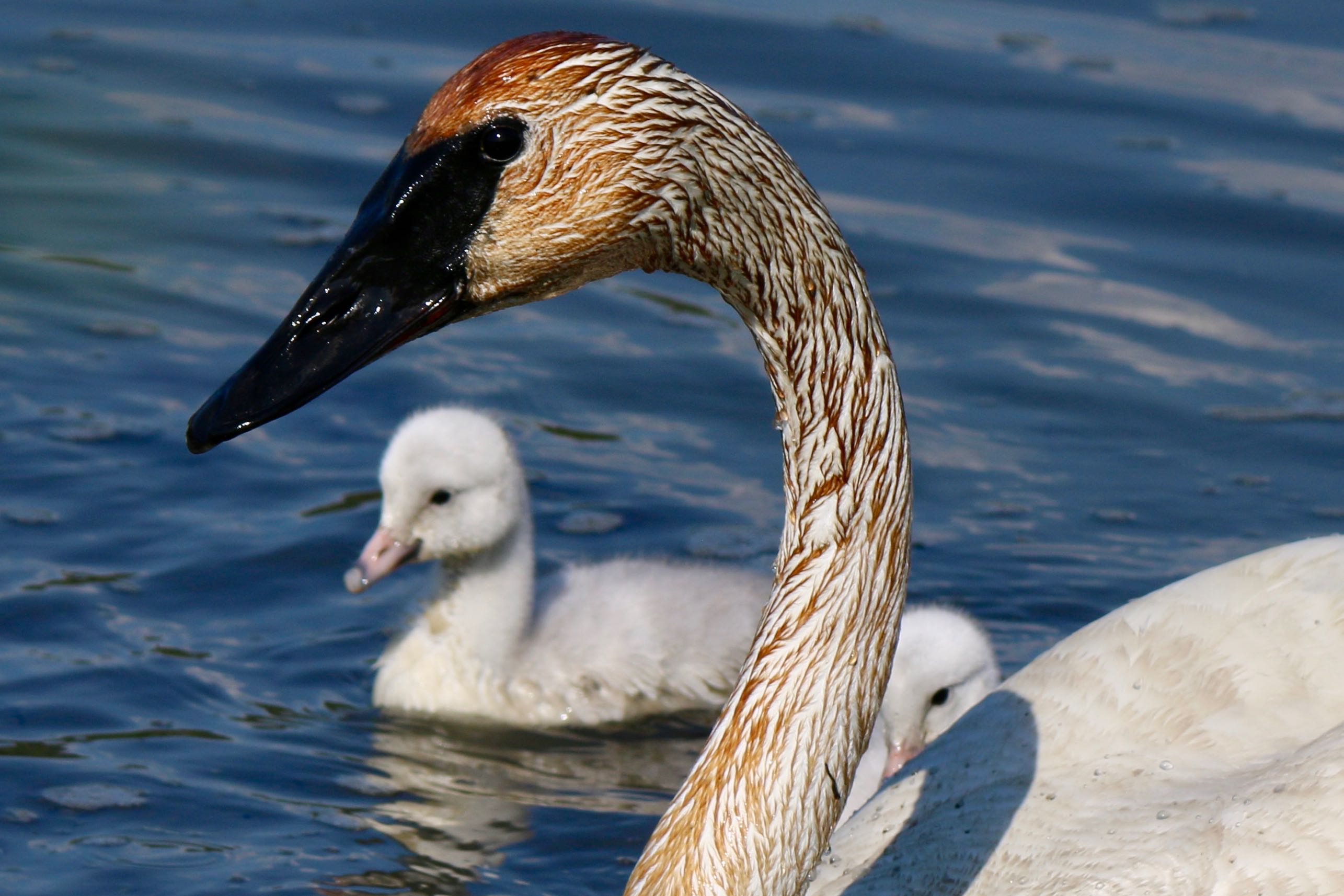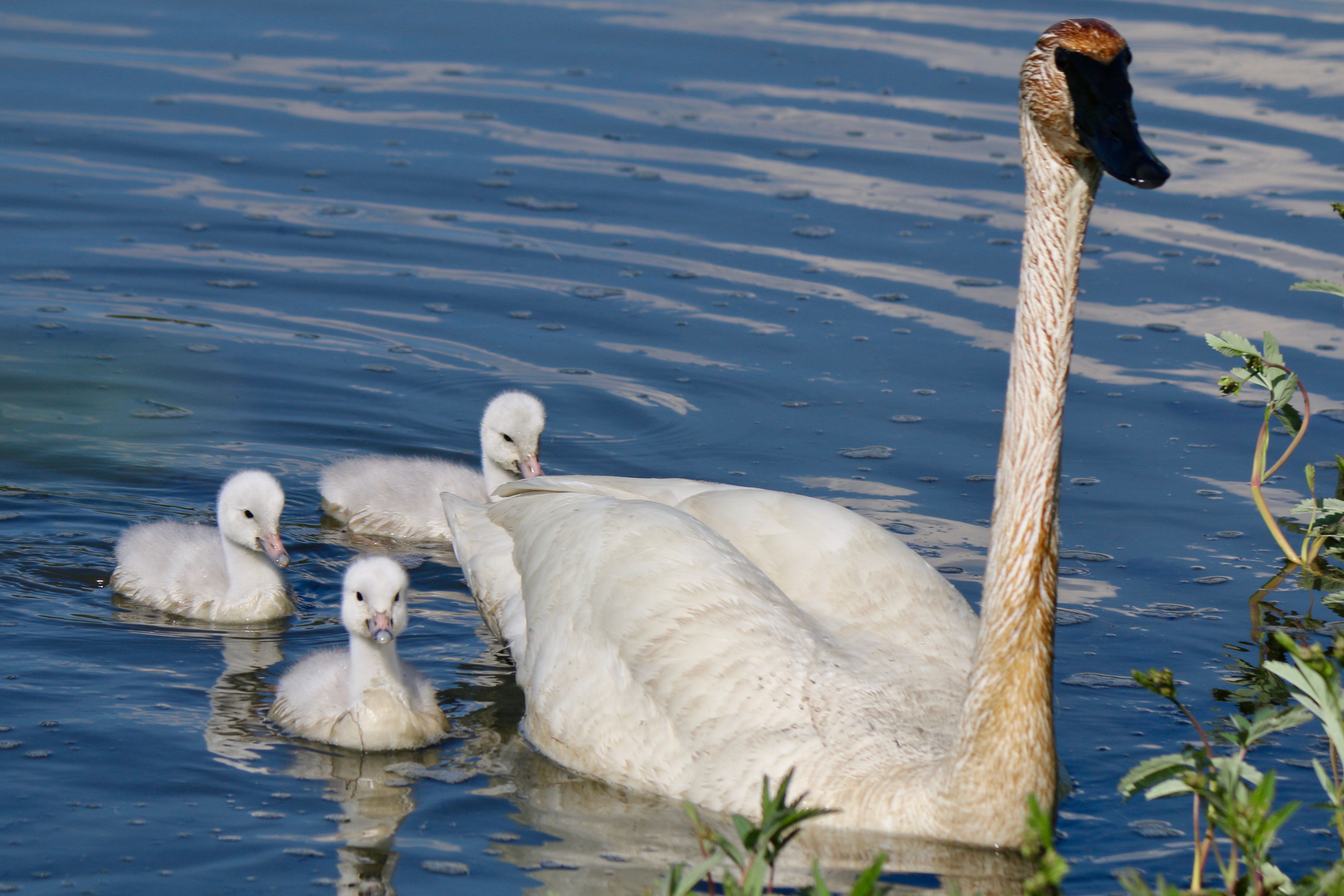 Nearly ten years ago I posted Swan Song, with photos of Trumpeter swans on Potter Marsh in the fall. Today I captured the spring version of their annual migration, and the marsh is currently overflowing with cuteness.
