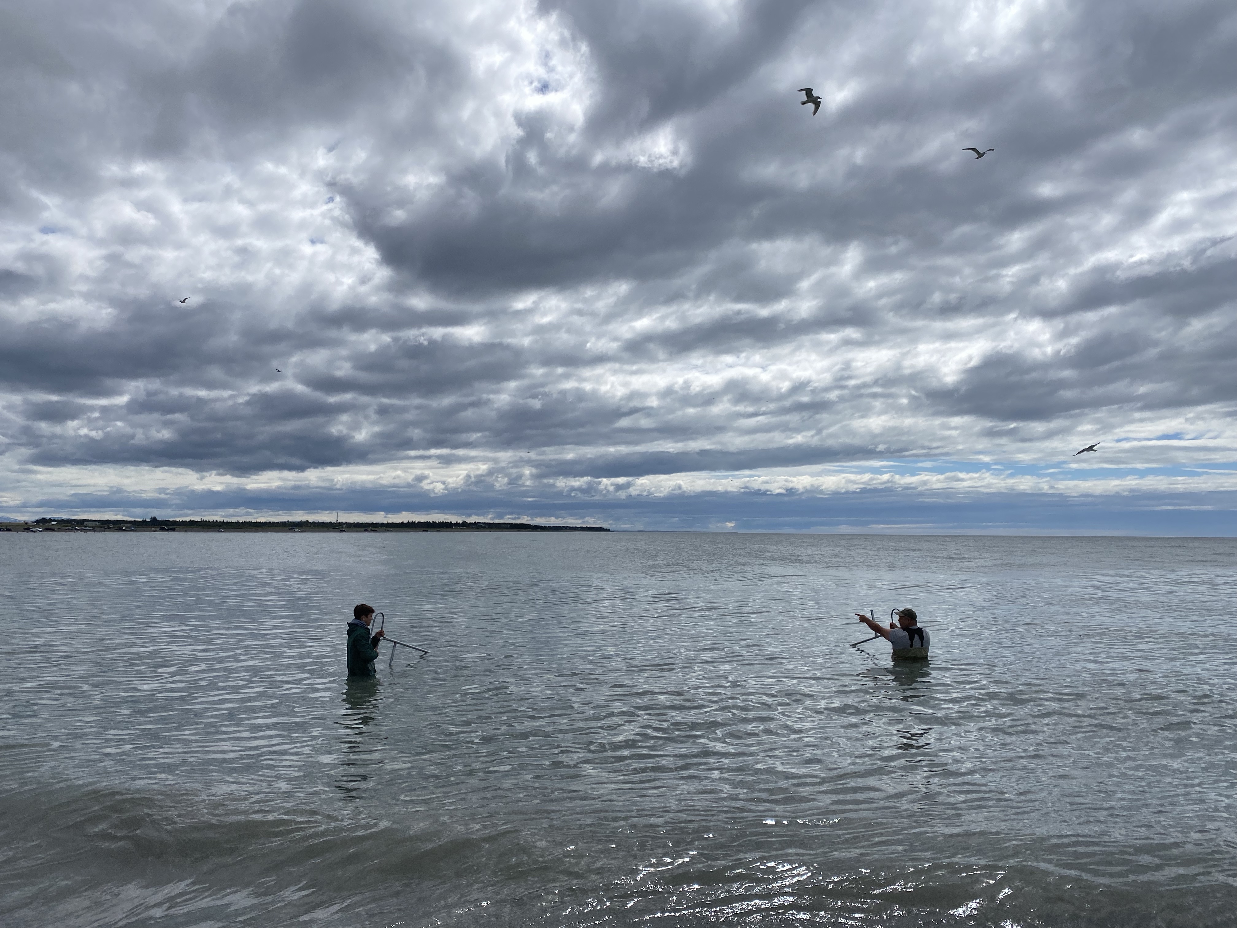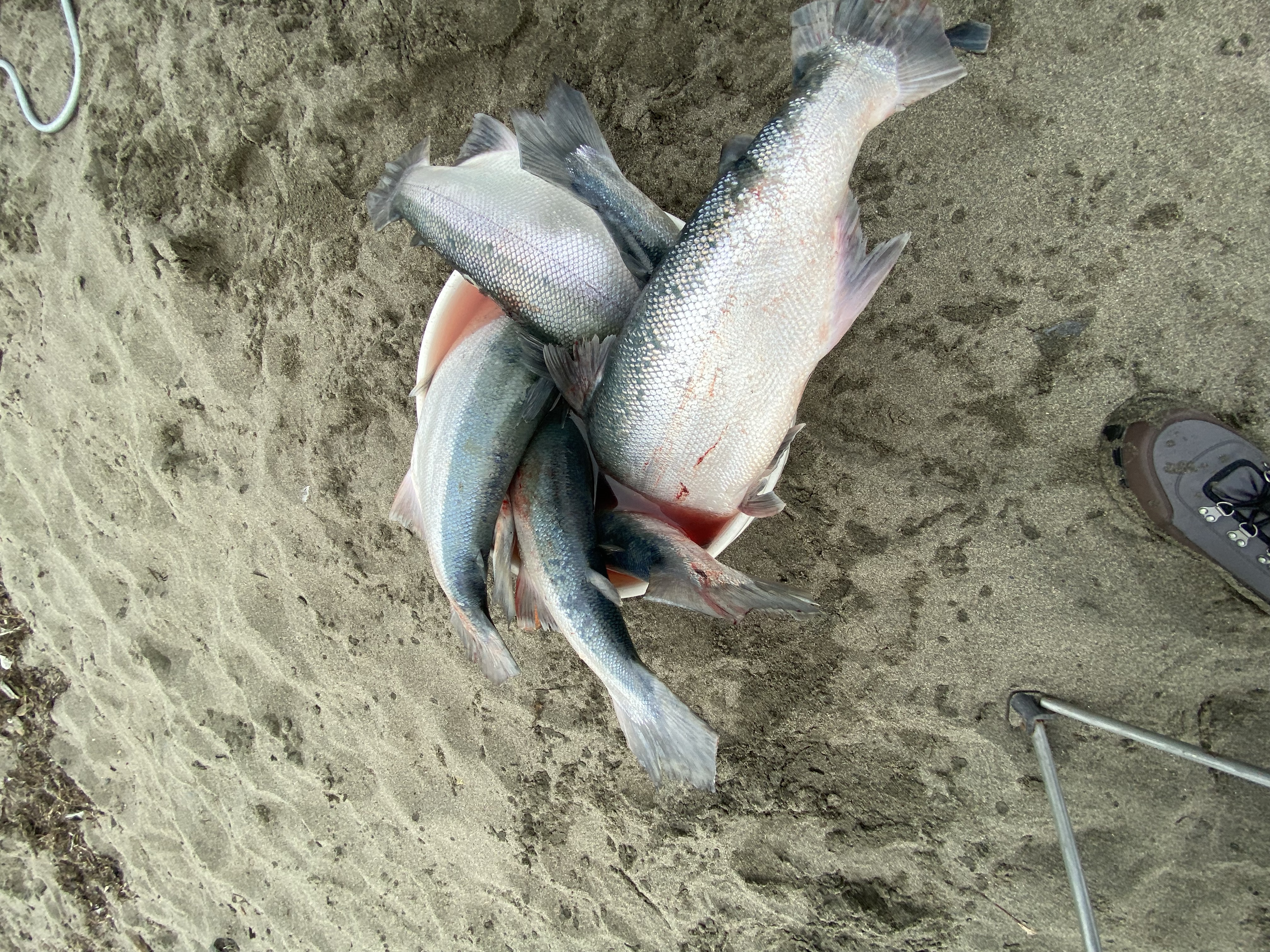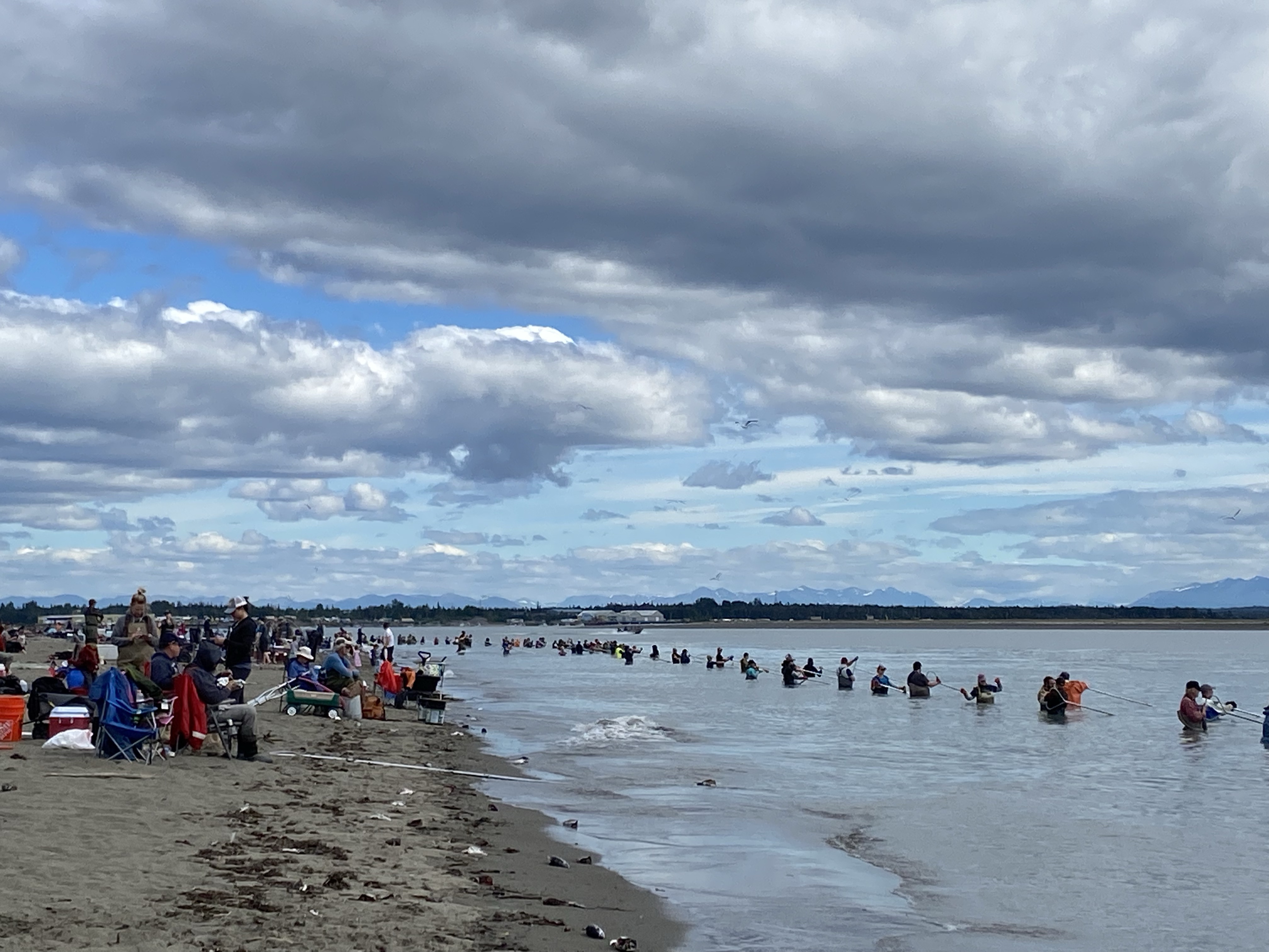 In late July the skies briefly cleared and the fish counts exploded, so Clark, Sam and I spent a sunny-ish Sunday dipnetting at the mouth of the Kenai. Maggie couldn’t get the day off work, but the rest of us ventured south and netted 26 salmon while fishing five hours in a single tide… and we survived a shark attack! (Okay, it was just a 3-foot long spiny dogfish that was struggling, likely because it was netted and released by a nearby dipper. I still wasn’t a fan of it lurking behind me, and was relieved when it finally swam away.)