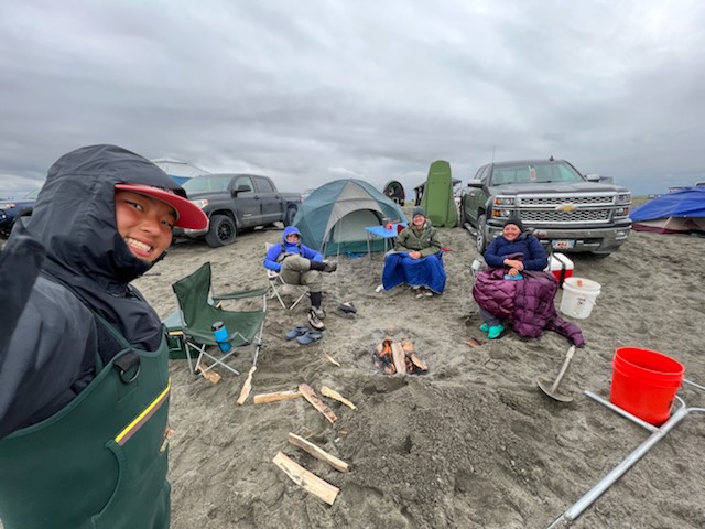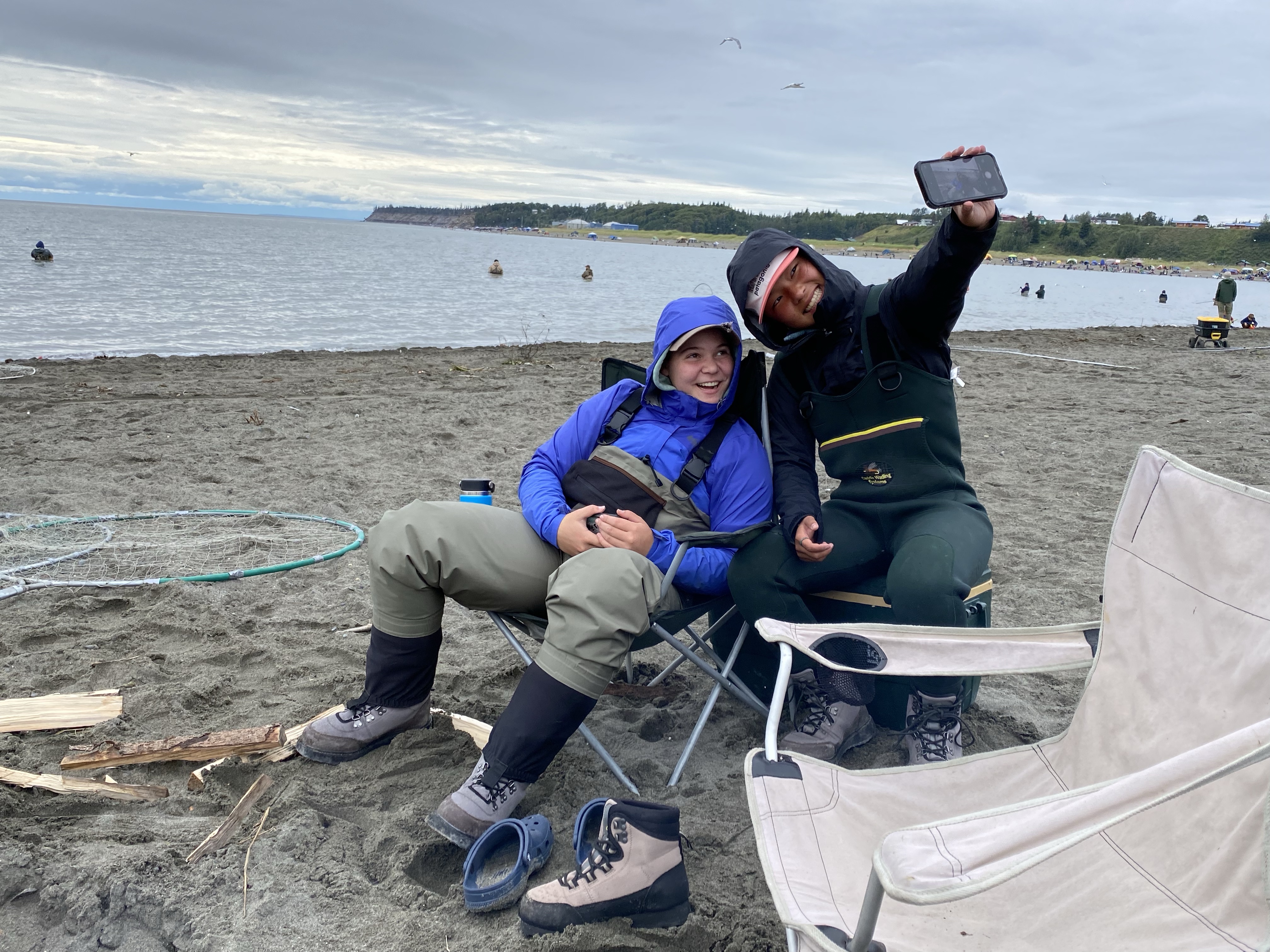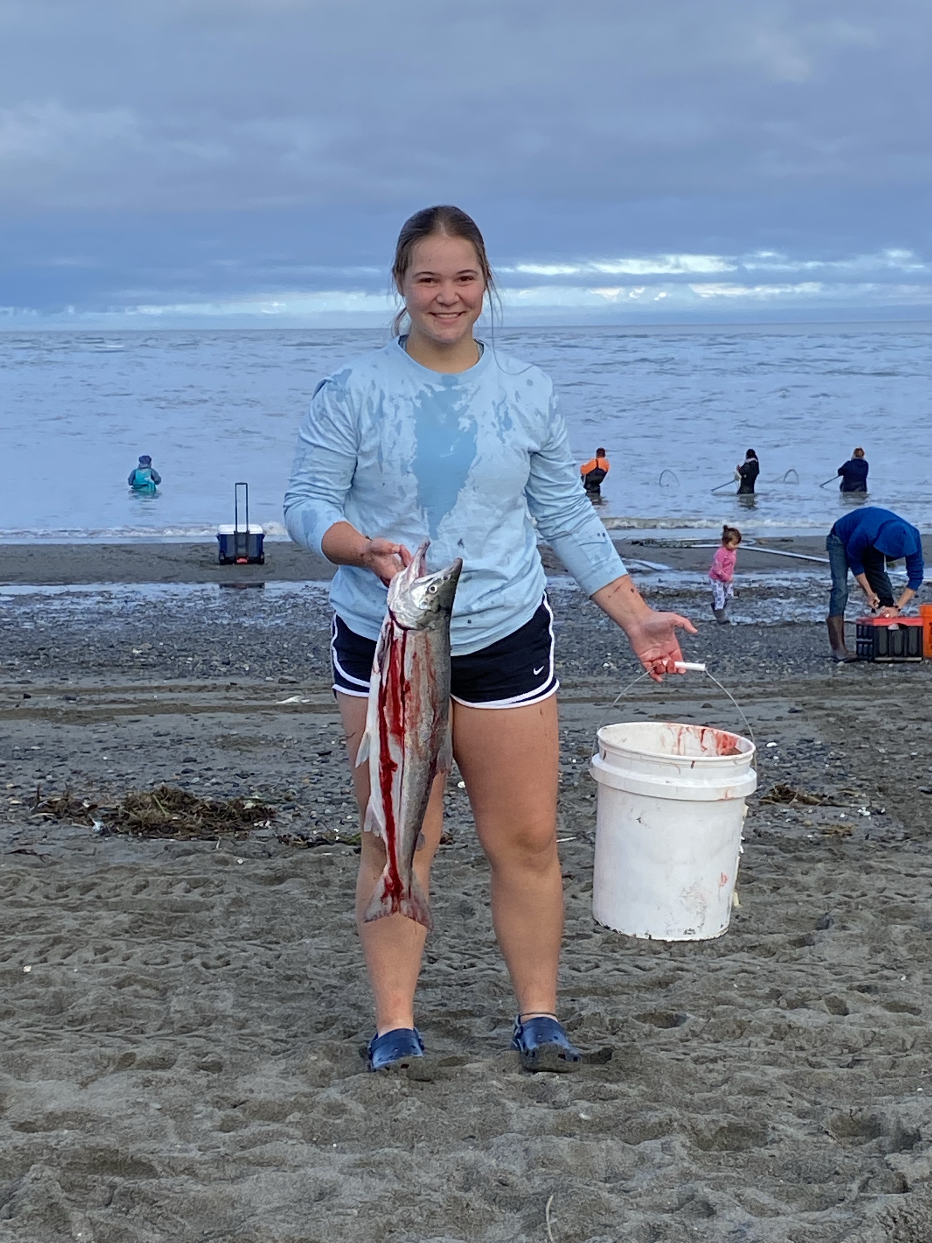 Maggie and I went back to the Kenai the following weekend for a mother/daughter camping trip with friends, an annual tradition we couldn’t miss. The girls made it easy on us moms: they safely secured our truckload with ratchet straps, pitched our tents in minutes, built the fire, and taught us all about .5 selfies to document our adventure. And of course they can fish! Maggie successfully netted two fish in a single net, which was a first for our family. In all, our group caught 21 sockeye in two tides on this trip. Props to our friends who donned wet waders for the early morning tide and hauled in the majority of the fish, while Maggie and I were happy to do beach and camp chores. Thank goodness we followed regulations to a tee – from clipping fish tails to marking our harvest cards – because the Fish & Game troopers paid us a visit while we packed up camp. I’m happy to report we passed inspection! Phew!