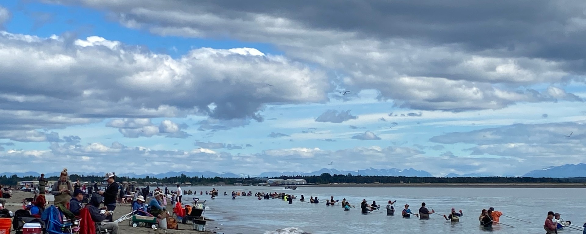 In late July the skies briefly cleared and the fish counts exploded, so Clark, Sam and I spent a sunny-ish Sunday dipnetting at the mouth of the Kenai. Maggie couldn’t get the day off work, but the rest of us ventured south and netted 26 salmon while fishing five hours in a single tide… and we survived a shark attack! (Okay, it was just a 3-foot long spiny dogfish that was struggling, likely because it was netted and released by a nearby dipper. I still wasn’t a fan of it lurking behind me, and was relieved when it finally swam away.)