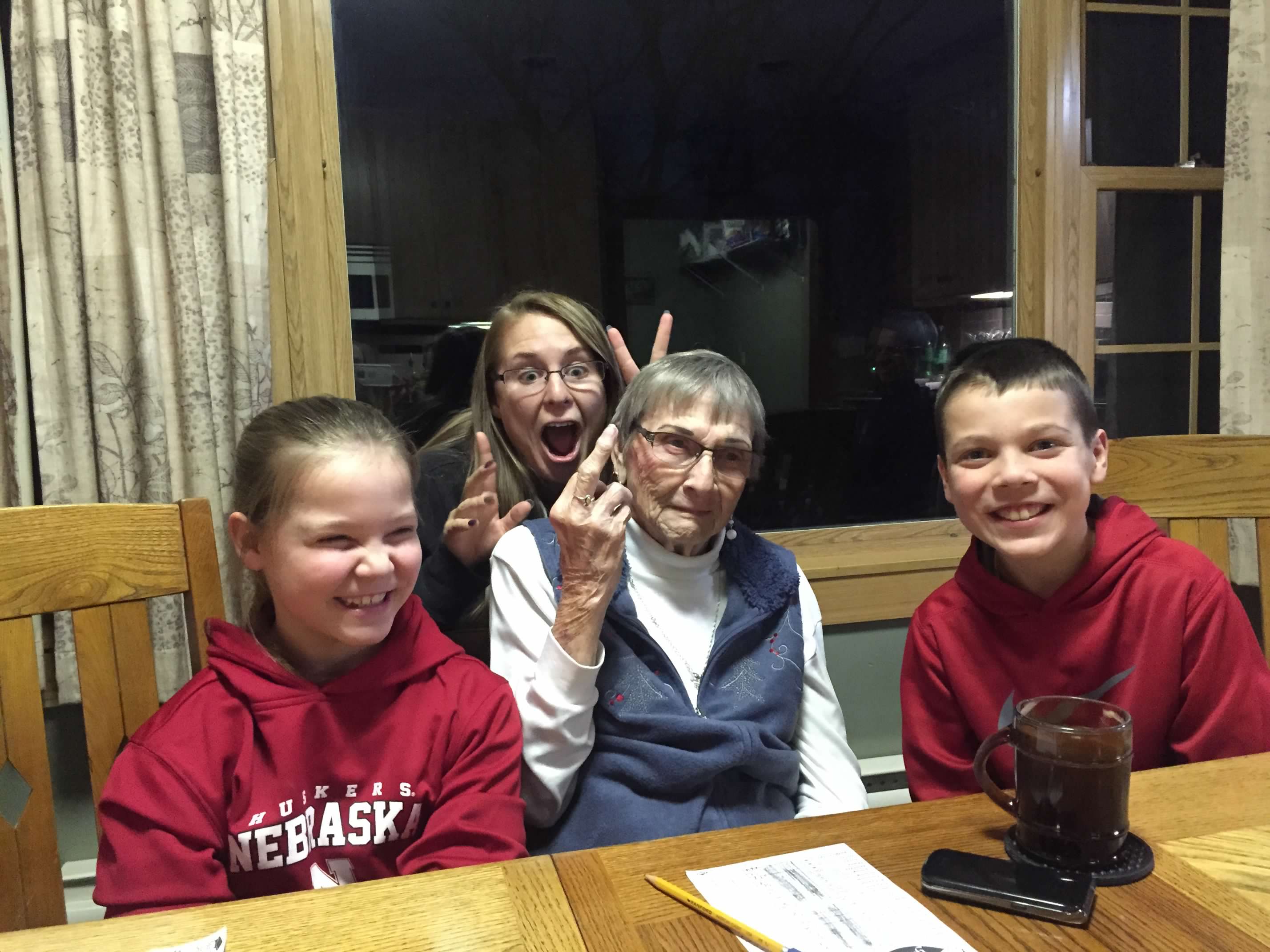 DeDe is survived by her six children, 11 grandchildren, nine great-grandchildren, and two great-great grandchildren in addition to many extended family members and lifelong friends. Her children are Mic (Deb) Daehnke of Wayne, NE and their children Hailey and Casey; Becky (John) Quigley of Nickerson, NE and their children Staci, Tyson, and Elle; Jeff Daehnke of Cave Creek, AZ and his children Kalei, Lealanei, and Annaka; Gwen Daehnke of Cave Creek, AZ; Joel Daehnke of Greeley, CO (Carla Daehnke of Mead, CO) and their children Sarah, Laura, and Mollie; and Jon (Amy Lonetree) Daehnke of Santa Cruz, CA. Her surviving nephew is Ron Gay of Casper, WY and surviving niece is Rhonda Gay of Raleigh, NC.