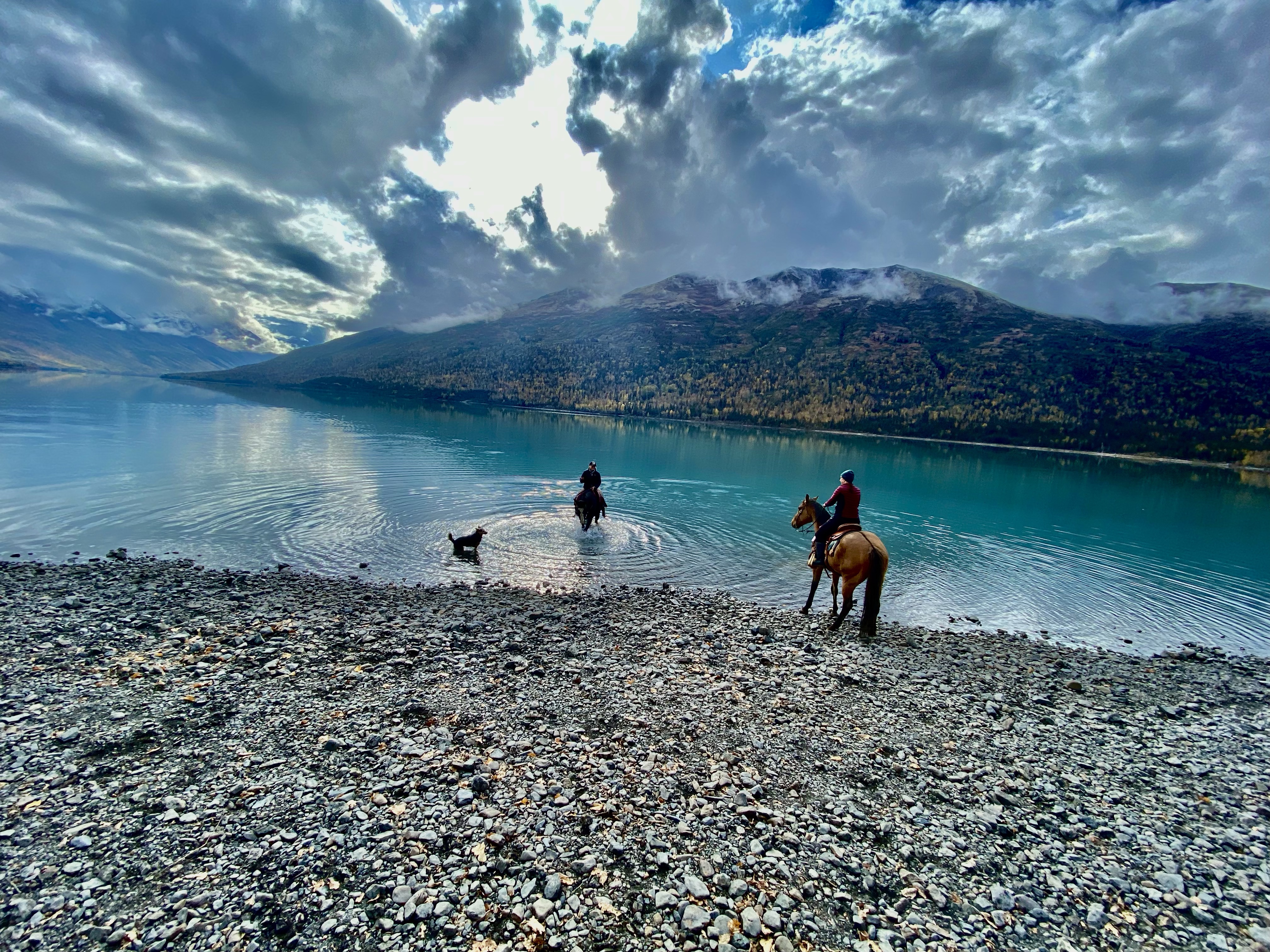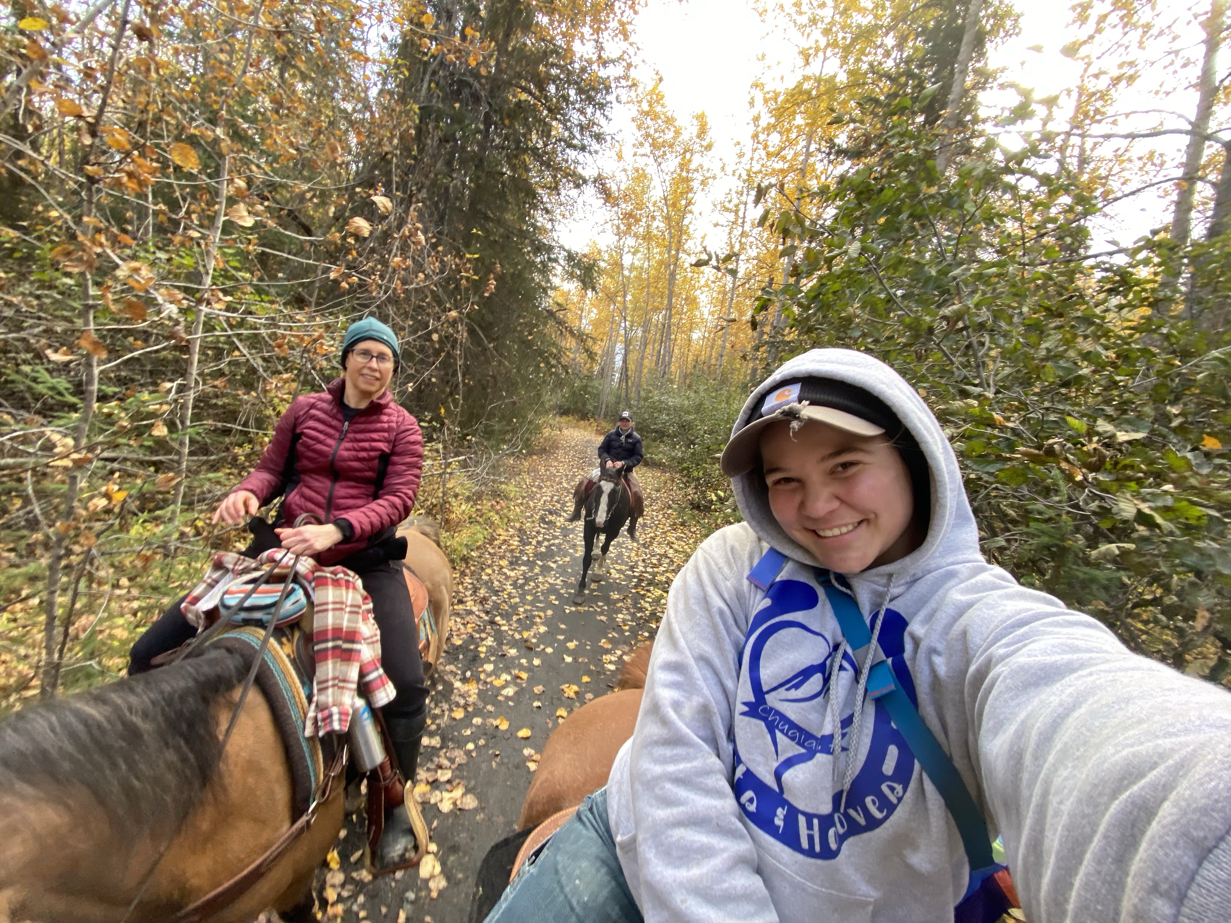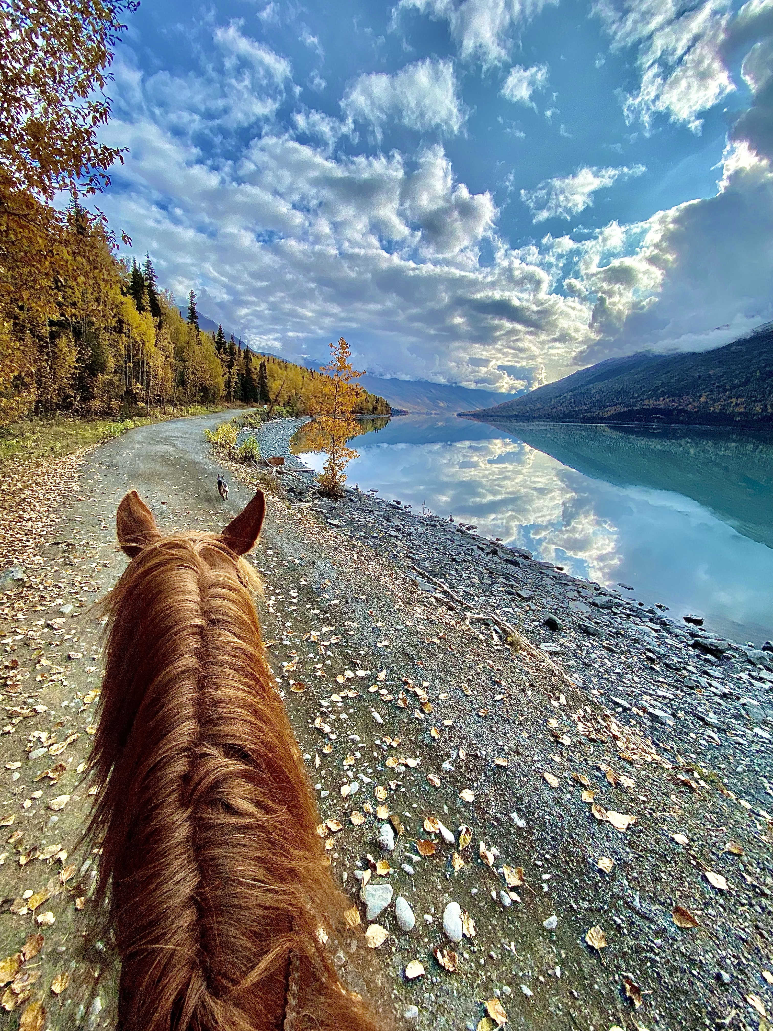 Maggie was the lottery winner of the season. She made plans for a trail ride at Eklutna Lake on September 29th, and the group committed to go, rain or shine. Lucky her: it was shine!