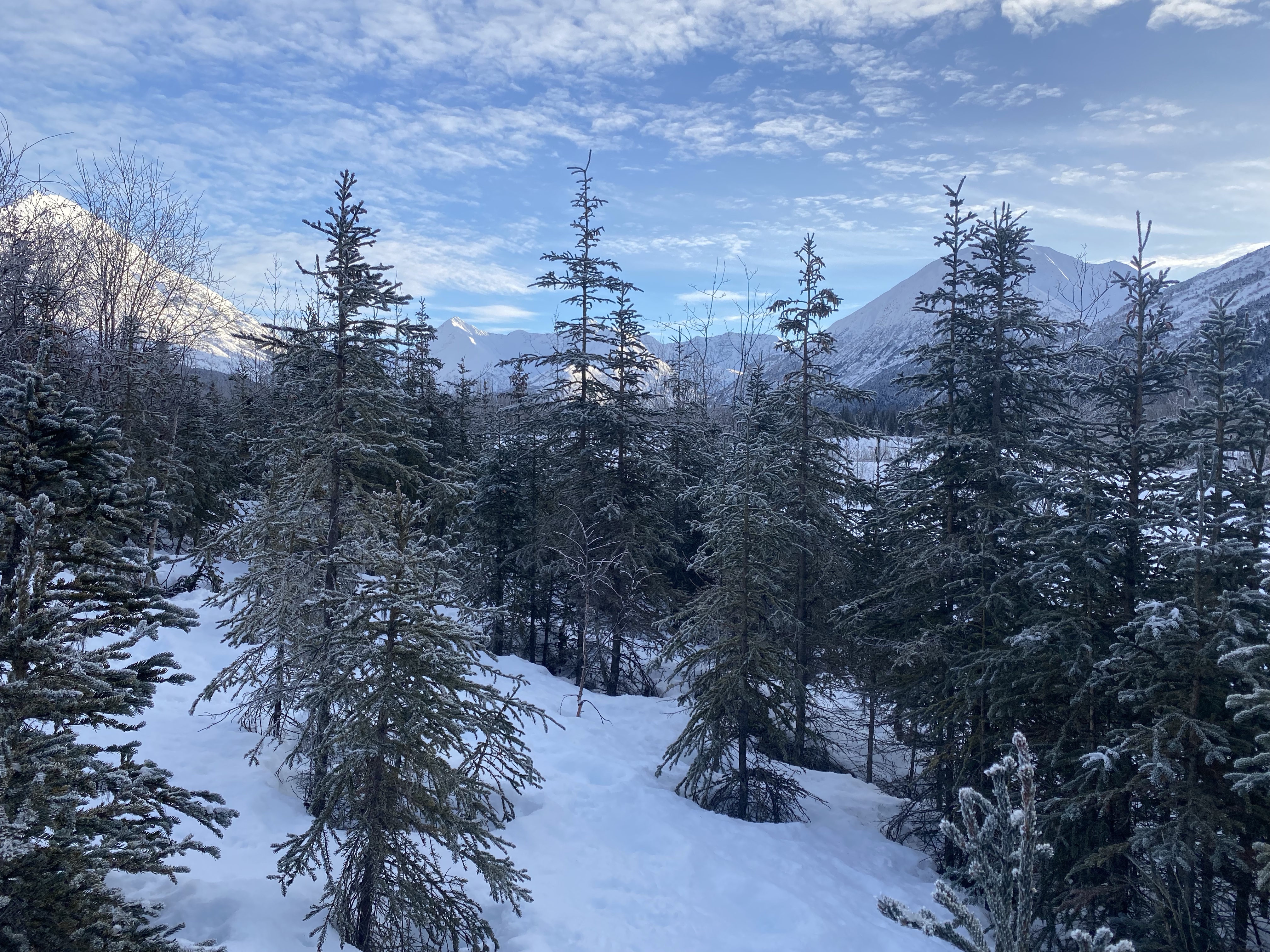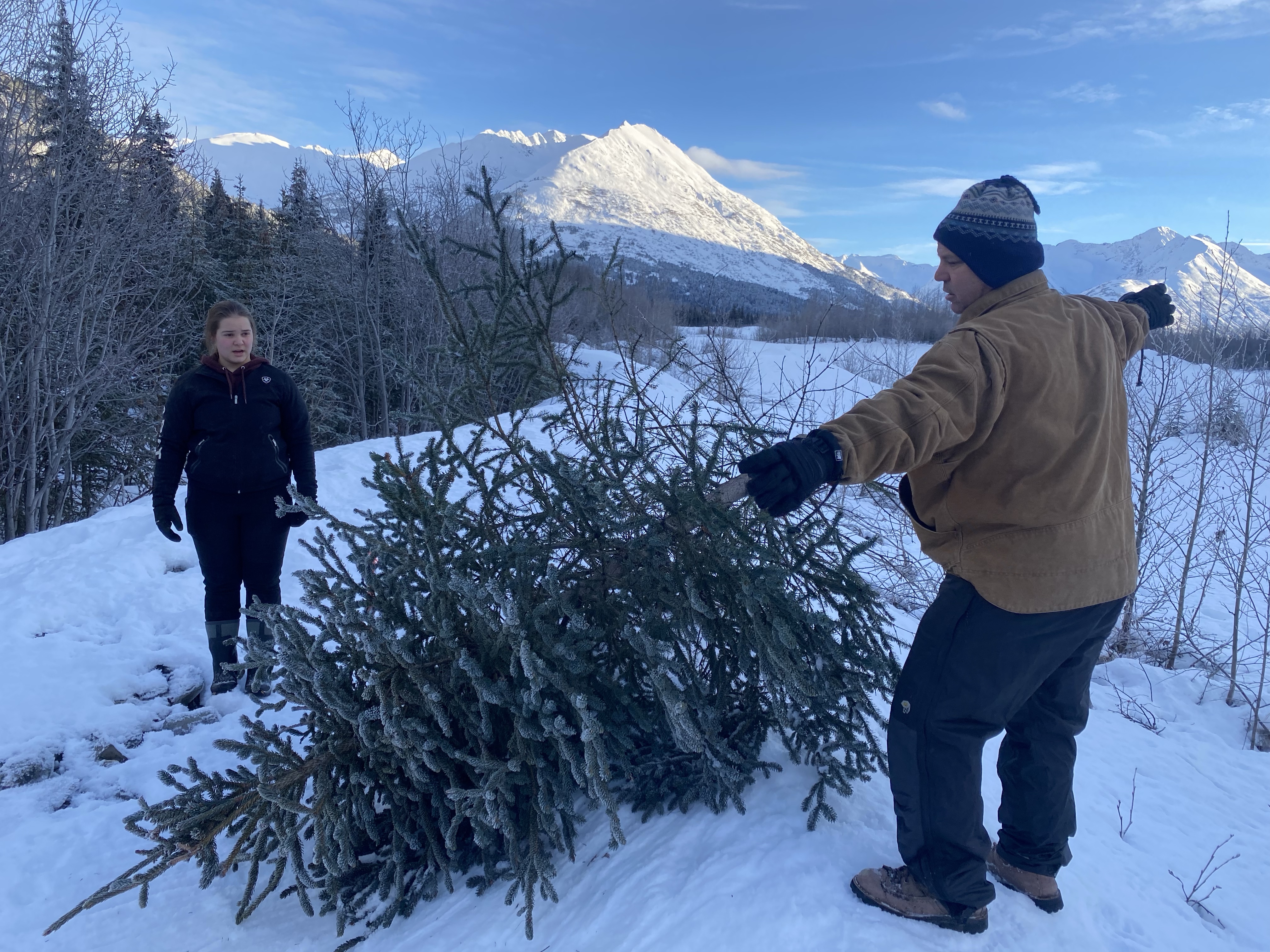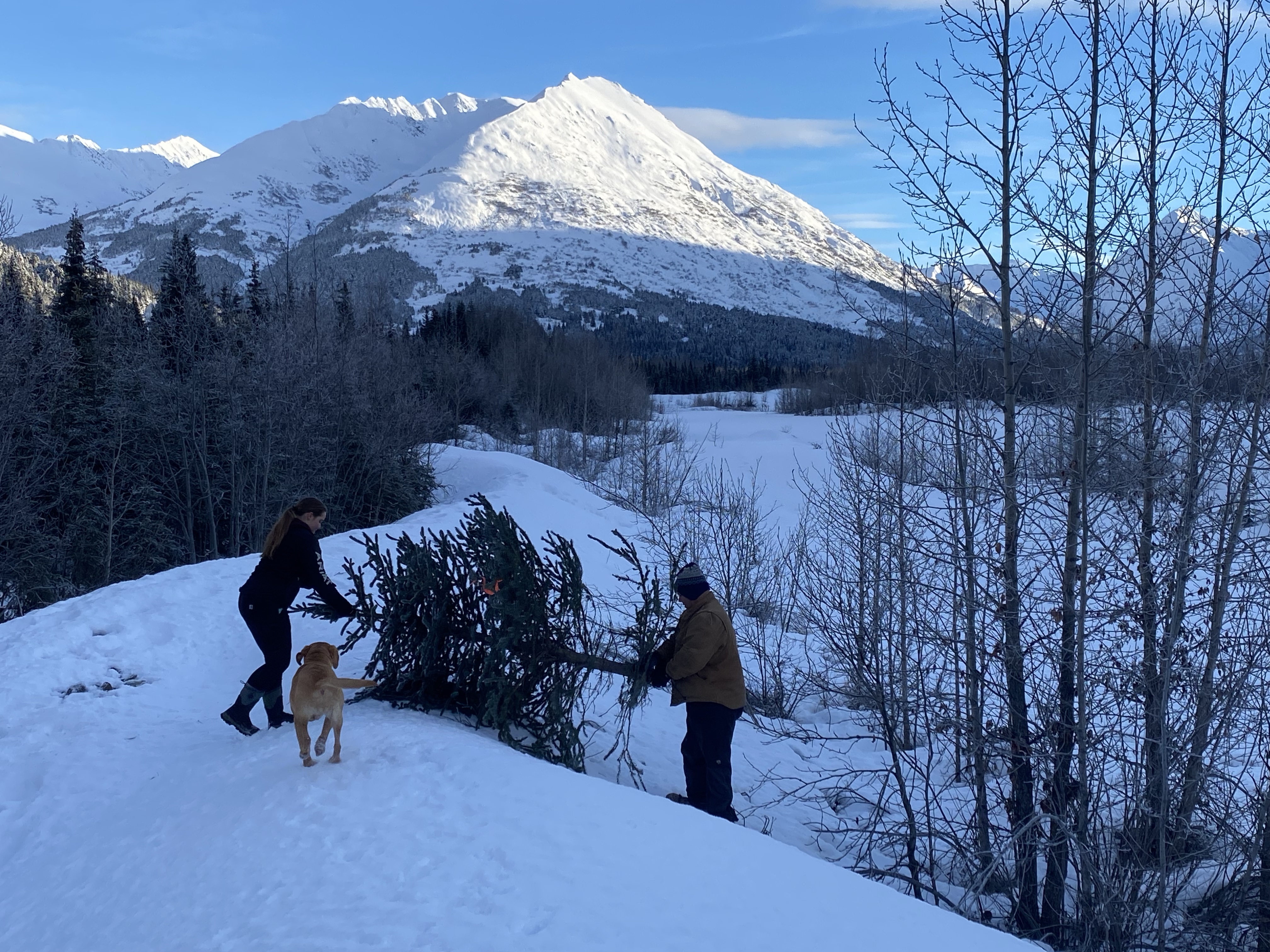 It was a good compromise that we repeated this holiday season: only three of us ventured into the Chugach National Forest to fetch our tree, but we waited for four to adorn it. This year was easier on several levels, as we are adjusting to our new family routine. December’s postcard perfect scenery helped as well.