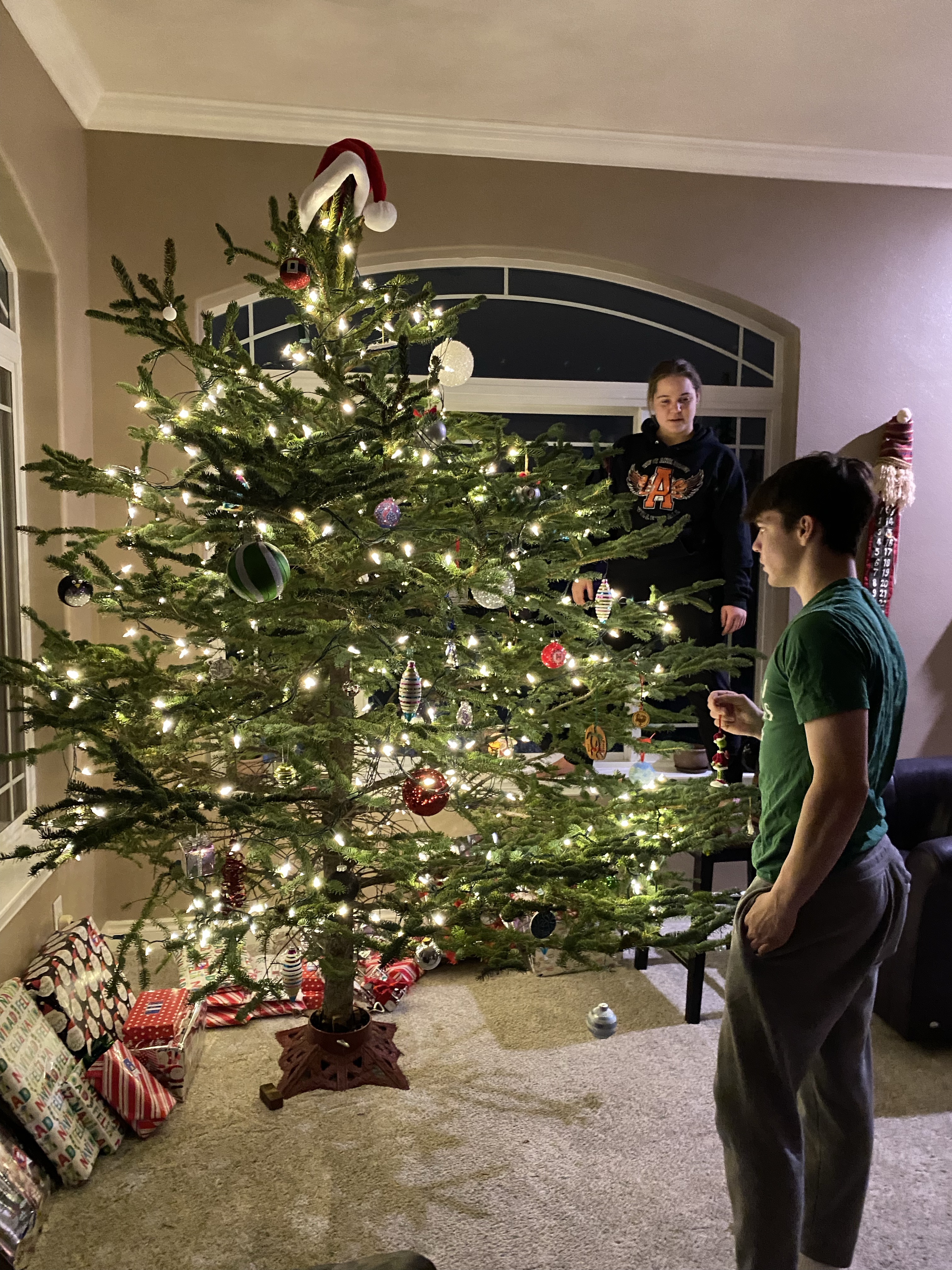 We brought the tree home and strung the lights, but waited to add ornaments until the entire family was together again: