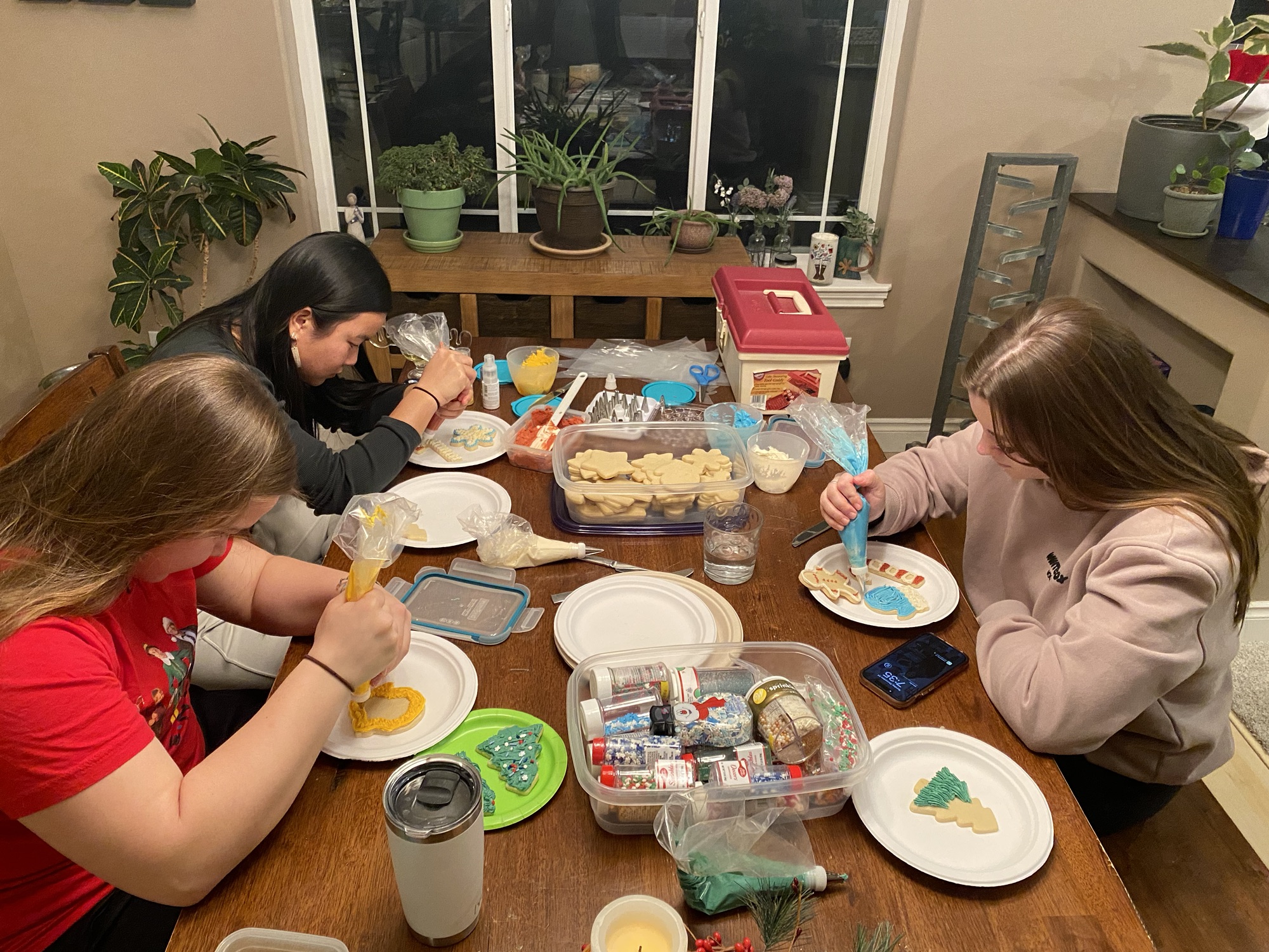 Another of our holiday traditions is hosting a gathering with friends on Christmas Eve, where we feast on homemade soups, festive appetizers, and of course delicious desserts. Over the years we’ve enjoyed gift exchanges, musical performances, crafts, and silly games that varied as the kids grew. I remember when they tracked Santa on NORAD, but this year Die Hard was playing on the big screen instead. Times do change! Decorating Christmas cookies is one constant, because no one is ever too old to decorate Christmas cookies!
